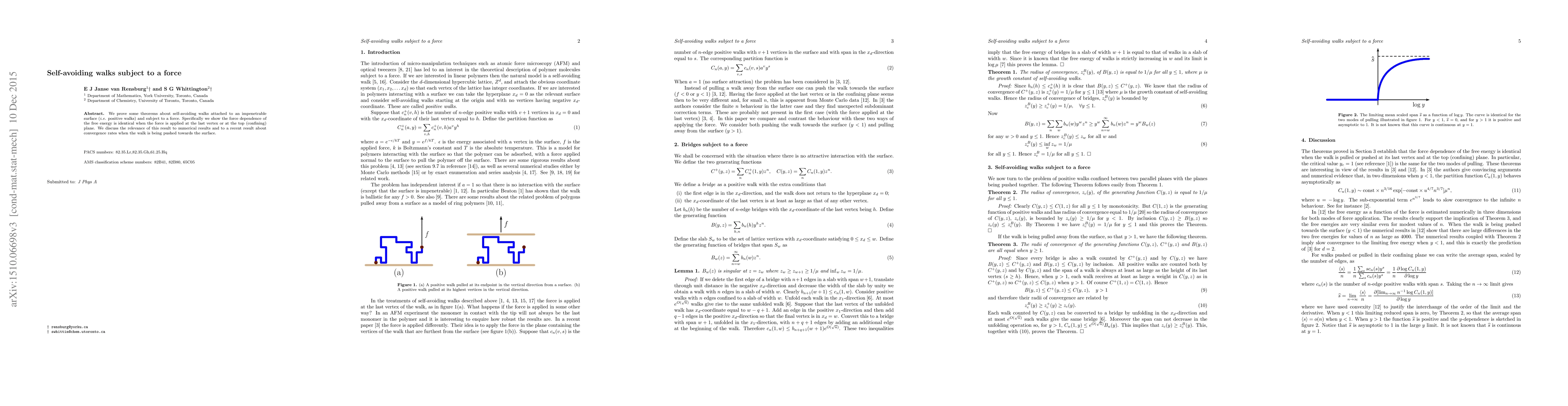 We prove some theorems about self-avoiding walks attached to an impenetrable surface (i.e. positive walks) and subject to a force. Specifically we show the force dependence of the free energy is identical when the force is applied at the last vertex or at the top (confining) plane. We discuss the relevance of this result to numerical results and to a recent result about convergence rates when the walk is being pushed towards the surface.