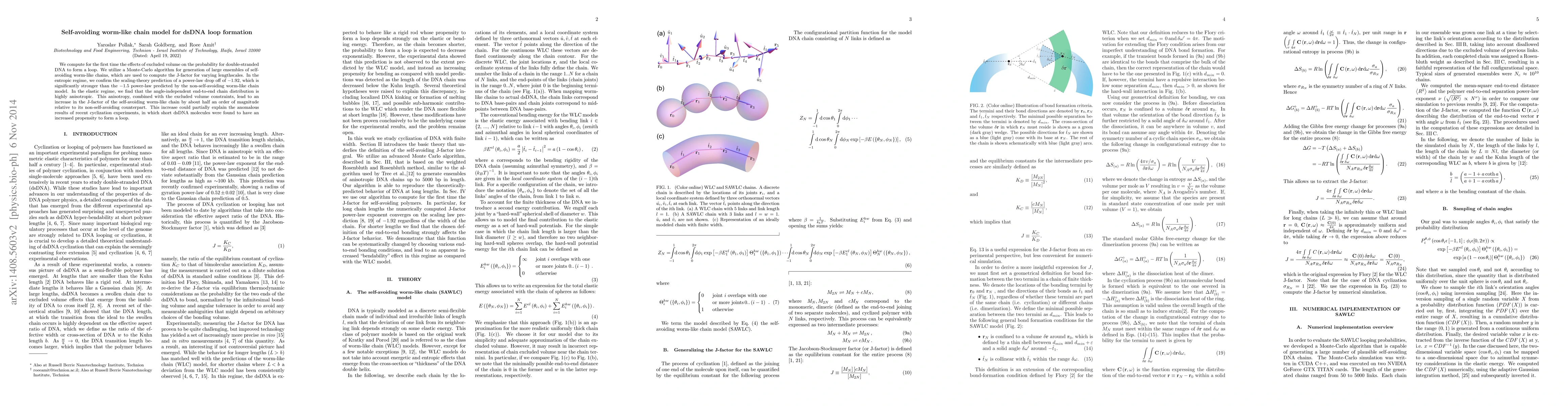 This study employs a Monte-Carlo algorithm to model the self-avoiding worm-like chain behavior of dsDNA, revealing a stronger -1.92 power-law drop in loop formation probability due to excluded volume effects, compared to the -1.5 power-law of non-self-avoiding models. The findings suggest an increased J-factor by half an order of magnitude, potentially explaining the enhanced loop formation observed in recent experiments.