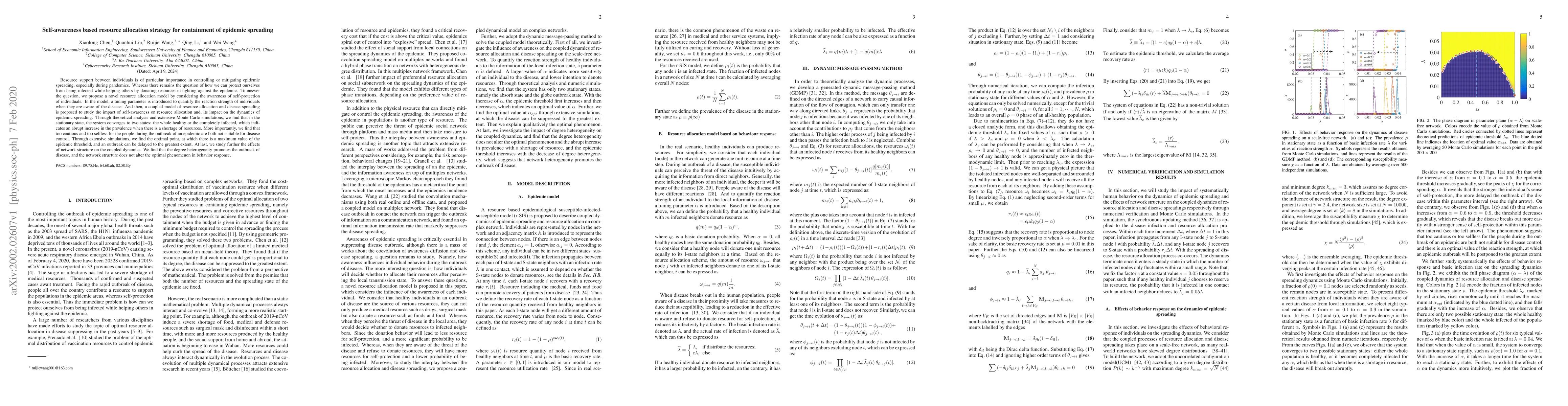 This paper proposes a novel self-awareness based resource allocation model to study epidemic control. It finds that both extreme caution and excessive selflessness are detrimental to disease containment, identifying an optimal balance for maximum epidemic threshold and delay. The analysis reveals that network heterogeneity exacerbates outbreaks but does not alter the identified optimal behavioral response.