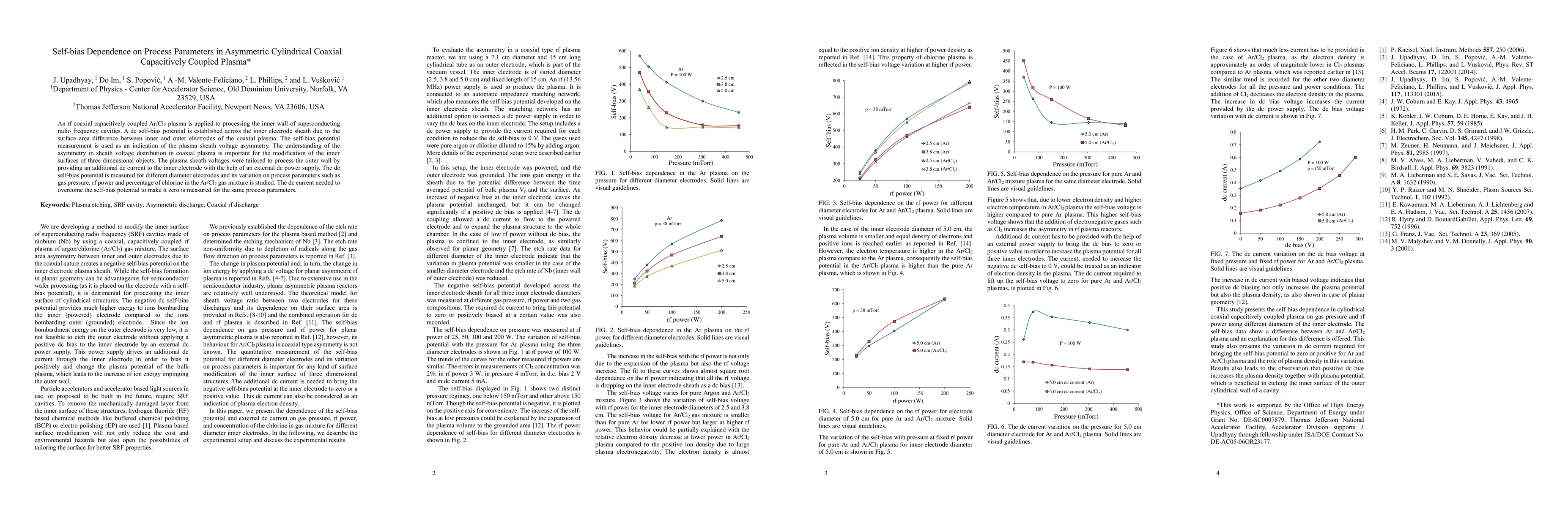 This paper investigates the self-bias potential in an asymmetric cylindrical coaxial plasma used for processing superconducting radio frequency cavities, focusing on its dependence on process parameters like gas pressure, rf power, and chlorine concentration. The study aims to understand sheath voltage asymmetry and its modification for better surface processing.