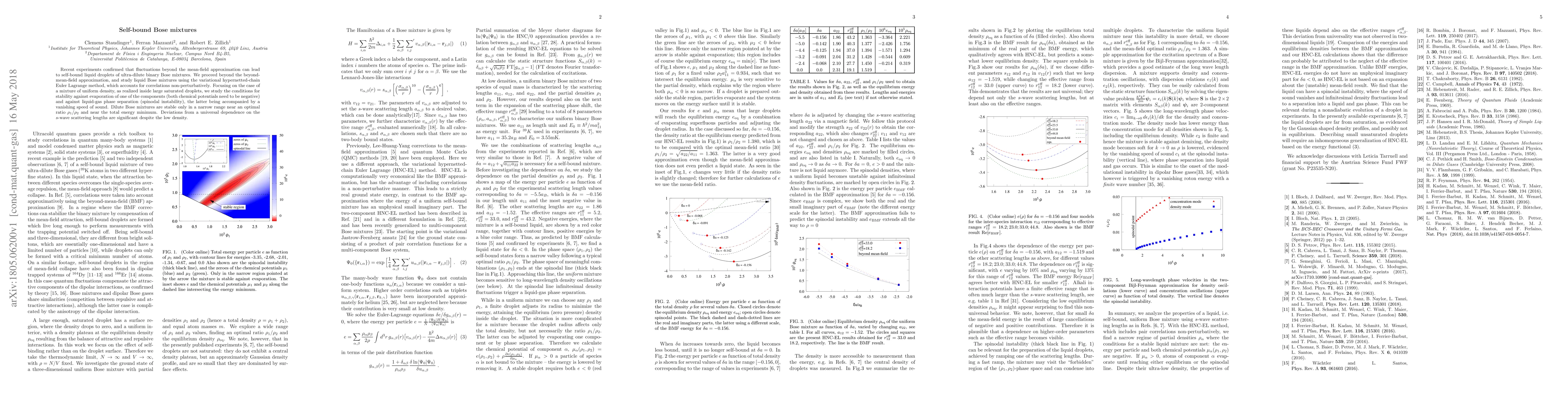 Recent experiments confirmed that fluctuations beyond the mean-field approximation can lead to self-bound liquid droplets of ultra-dilute binary Bose mixtures. We proceed beyond the beyond-mean-field approximation, and study liquid Bose mixtures using the variational hypernetted-chain Euler Lagrange method, which accounts for correlations non-perturbatively. Focusing on the case of a mixture of uniform density, as realized inside large saturated droplets, we study the conditions for stability against evaporation of one of the components (both chemical potentials need to be negative) and against liquid-gas phase separation (spinodal instability), the latter being accompanied by a vanishing speed of sound. Dilute Bose mixtures are stable only in a narrow range near an optimal ratio $\rho_1/\rho_2$ and near the total energy minimum. Deviations from a universal dependence on the s-wave scattering lengths are significant despite the low density.