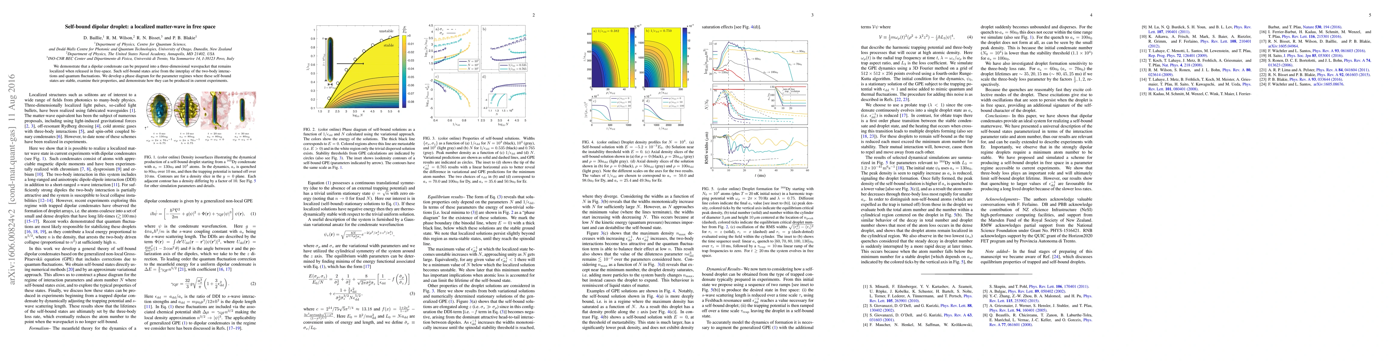 This paper demonstrates the creation of a self-bound dipolar condensate in free space, stabilized through two-body interactions and quantum fluctuations, and provides a phase diagram for its stability and experimental production.
