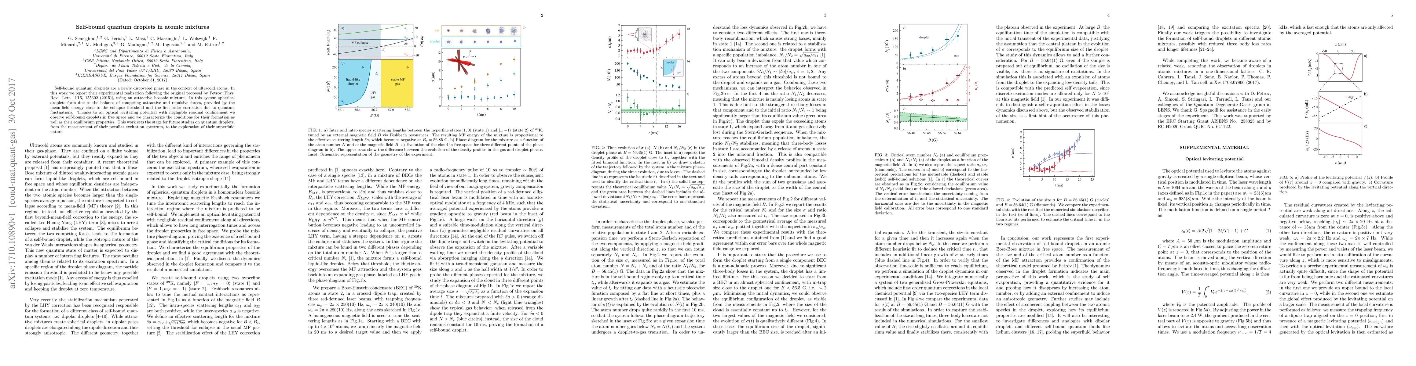 This paper reports the experimental realization of self-bound quantum droplets in an ultracold atomic mixture, balancing attractive and repulsive forces. Using an optical levitating potential, the researchers observe these droplets in free space and characterize their formation and equilibrium properties, paving the way for future studies on their excitation spectrum and superfluid nature.