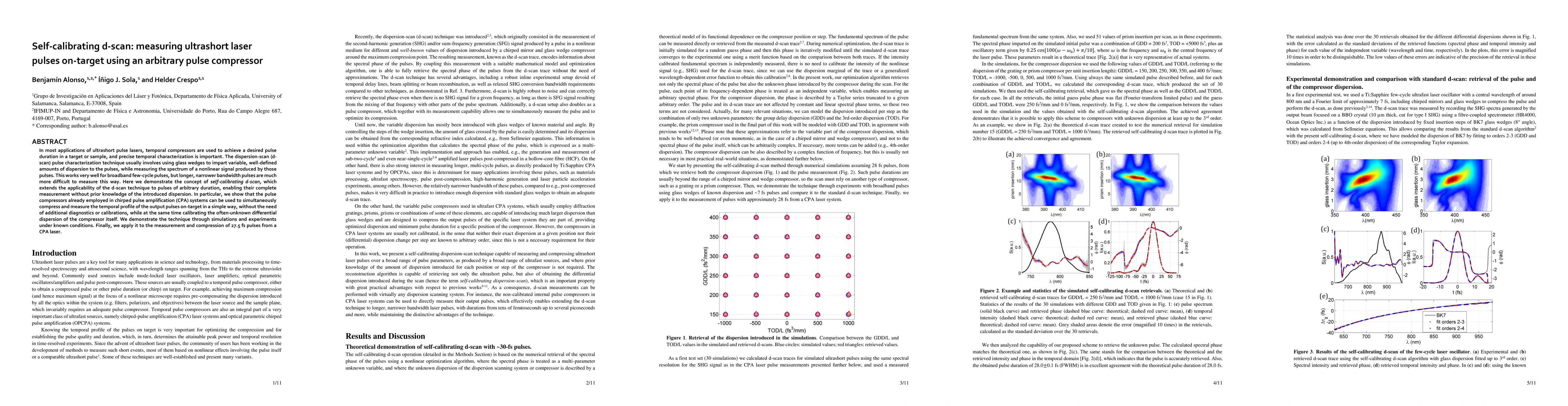 This paper introduces a self-calibrating d-scan technique for measuring ultrashort laser pulses on-target, extending the d-scan method to pulses of any duration. It leverages pulse compressors in chirped pulse amplification systems to simultaneously compress and characterize pulses, eliminating the need for additional diagnostics and calibrating the compressor's dispersion.