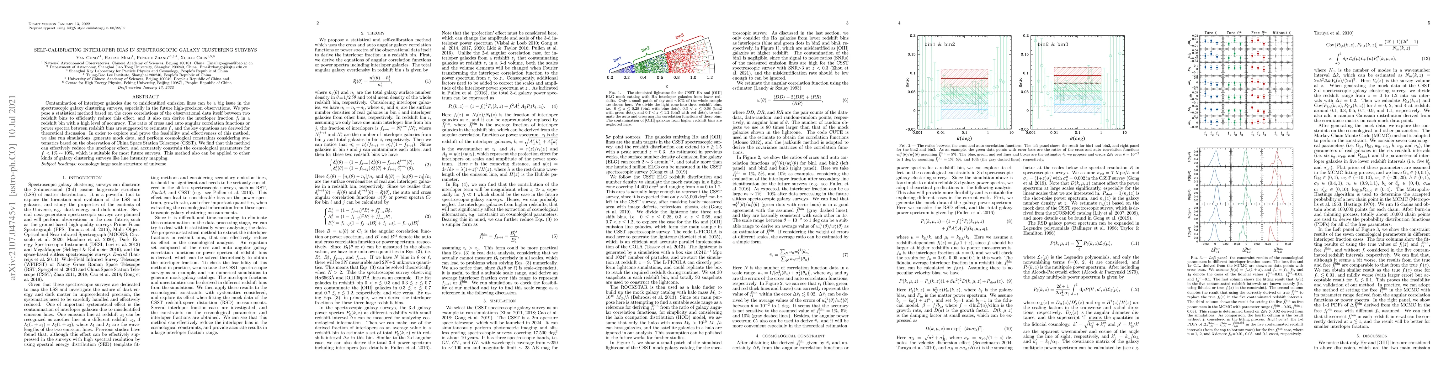 This paper proposes a statistical method to reduce interloper bias in spectroscopic galaxy clustering surveys, using cross-correlations between redshift bins to accurately estimate interloper fractions and improve data precision. Simulations and mock data from the CSST demonstrate the method's effectiveness in reducing interloper effects and constraining cosmological parameters.