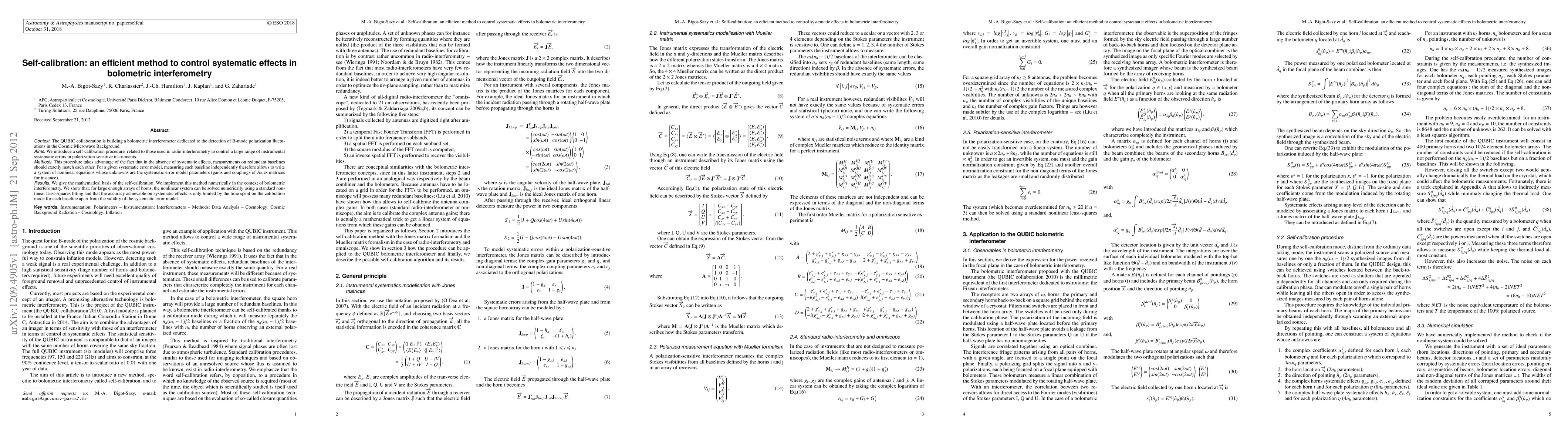 Context. The QUBIC collaboration is building a bolometric interferometer dedicated to the detection of B-mode polarization fluctuations in the Cosmic Microwave Background. Aims. We introduce a self-calibration procedure related to those used in radio-interferometry to control a large range of instrumental systematic errors in polarization-sensitive instruments. Methods. This procedure takes advantage of the fact that in the absence of systematic effects, measurements on redundant baselines should exactly match each other. For a given systematic error model, measuring each baseline independently therefore allows to write a system of nonlinear equations whose unknowns are the systematic error model parameters (gains and couplings of Jones matrices for instance). Results. We give the mathematical basis of the self-calibration. We implement this method numerically in the context of bolometric interferometry. We show that, for large enough arrays of horns, the nonlinear system can be solved numerically using a standard nonlinear least-squares fitting and that the accuracy achievable on systematic effects is only limited by the time spent on the calibration mode for each baseline apart from the validity of the systematic error model.