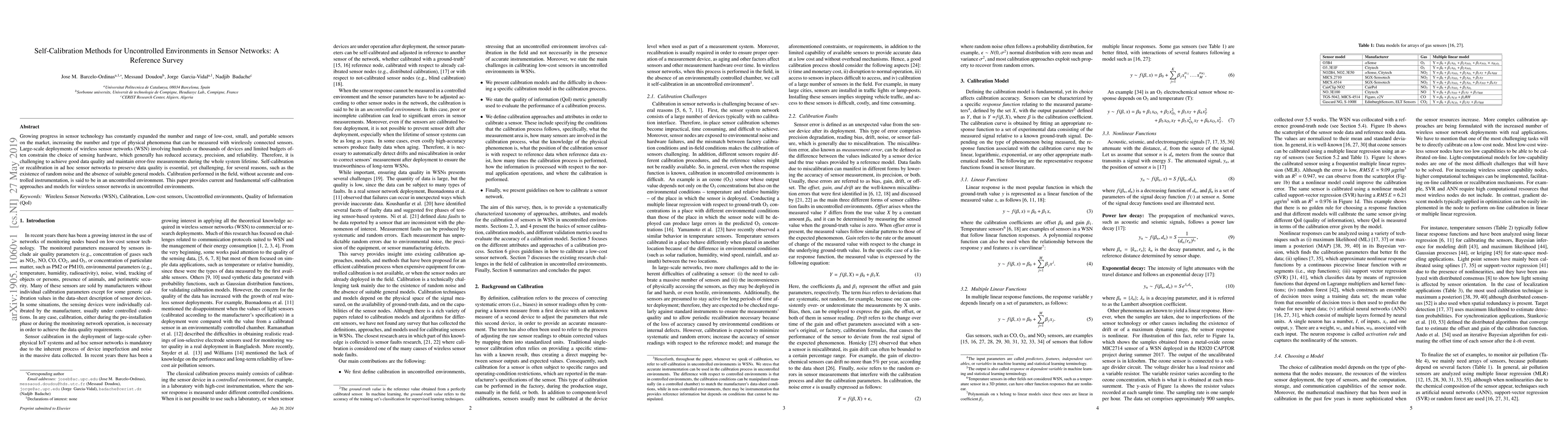 Growing progress in sensor technology has constantly expanded the number and range of low-cost, small, and portable sensors on the market, increasing the number and type of physical phenomena that can be measured with wirelessly connected sensors. Large-scale deployments of wireless sensor networks (WSN) involving hundreds or thousands of devices and limited budgets often constrain the choice of sensing hardware, which generally has reduced accuracy, precision, and reliability. Therefore, it is challenging to achieve good data quality and maintain error-free measurements during the whole system lifetime. Self-calibration or recalibration in ad hoc sensor networks to preserve data quality is essential, yet challenging, for several reasons, such as the existence of random noise and the absence of suitable general models. Calibration performed in the field, without accurate and controlled instrumentation, is said to be in an uncontrolled environment. This paper provides current and fundamental self-calibration approaches and models for wireless sensor networks in uncontrolled environments.