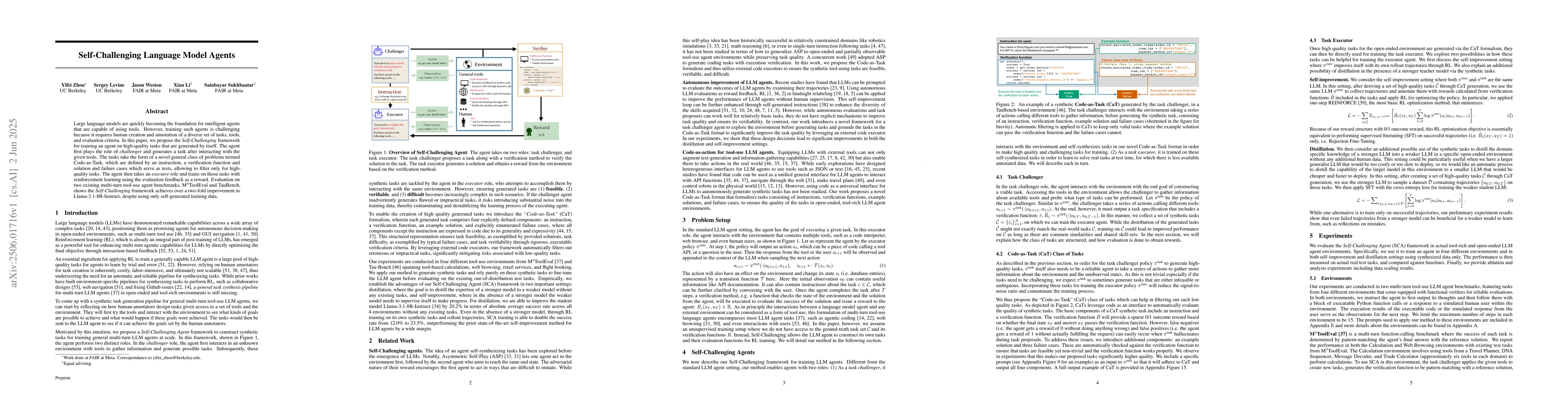 The Self-Challenging framework, which enables an agent to autonomously generate high-quality tasks (Code-as-Task) and train using reinforcement learning with self-generated data.
