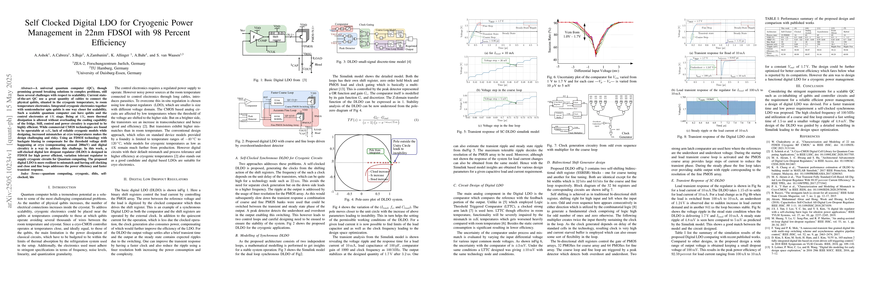 Researchers designed a self-clocked digital LDO for cryogenic power management in 22nm FDSOI technology, achieving 98% efficiency and addressing scalability challenges in quantum computing.