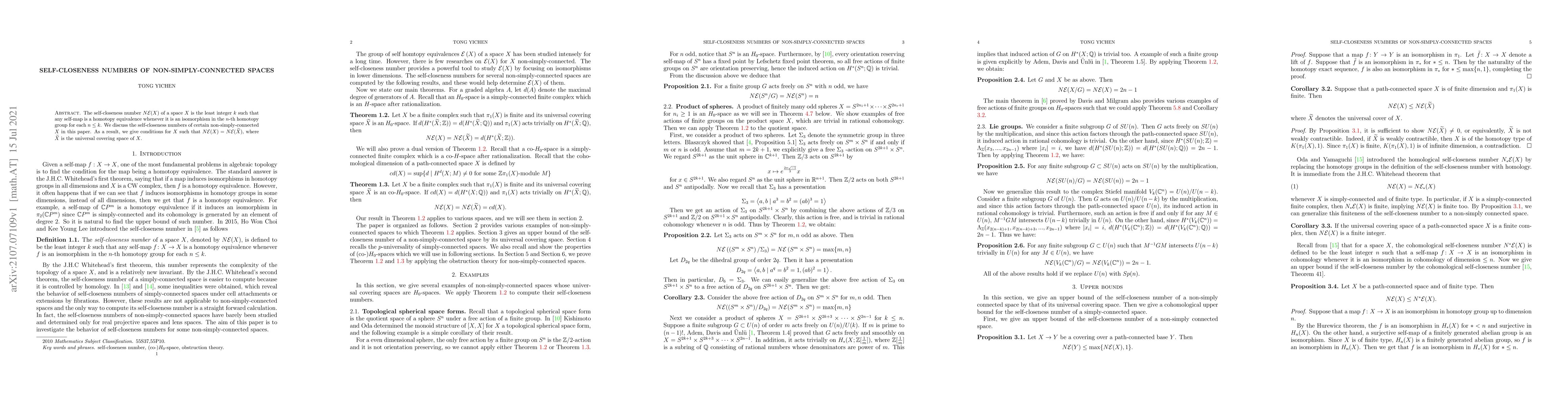 This paper investigates the self-closeness number $N\mathcal{E}(X)$ for non-simply-connected spaces $X$, defining it as the smallest integer $k$ where any self-map inducing isomorphisms in the first $k$ homotopy groups is a homotopy equivalence. It finds conditions under which $N\mathcal{E}(X) = N\mathcal{E}(\widetilde{X})$, where $\widetilde{X}$ is $X$'s universal covering space.
