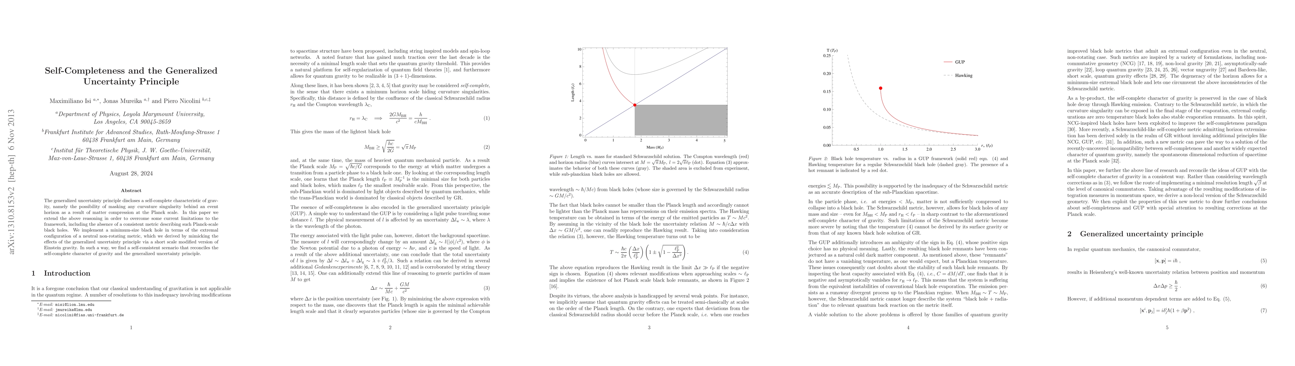 This paper explores the generalized uncertainty principle and its implications for gravity, proposing a self-consistent metric for Planck-scale black holes that masks curvature singularities behind event horizons. The authors derive a minimum-size black hole configuration using a modified version of Einstein gravity to reconcile the self-complete nature of gravity with the generalized uncertainty principle.