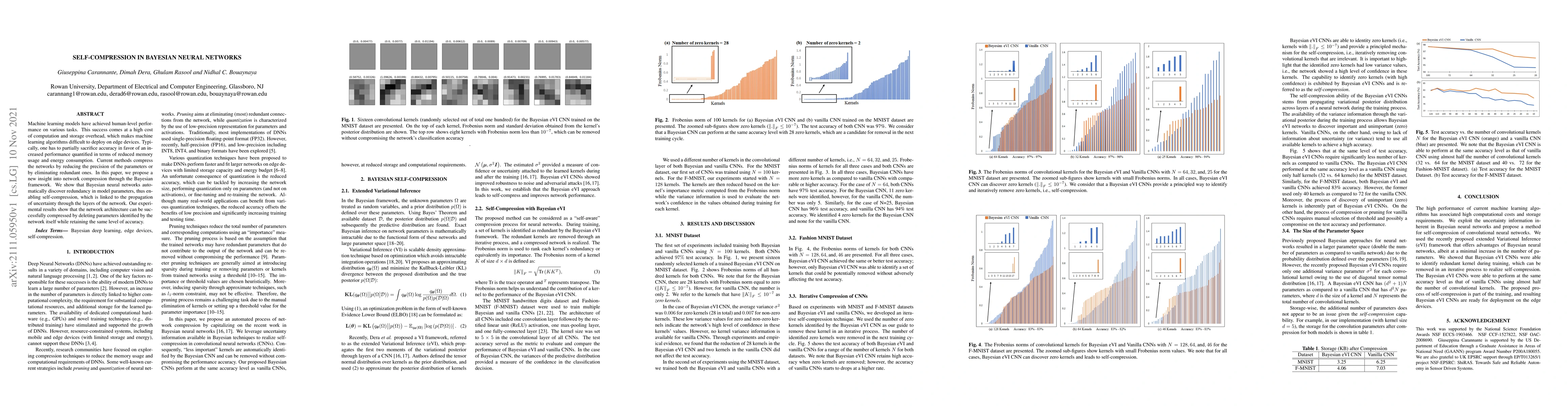 This paper proposes a novel self-compression method for Bayesian neural networks, demonstrating that these networks inherently identify redundant parameters, allowing for effective compression without sacrificing accuracy. The method leverages the propagation of uncertainty to pinpoint and remove unnecessary parameters.