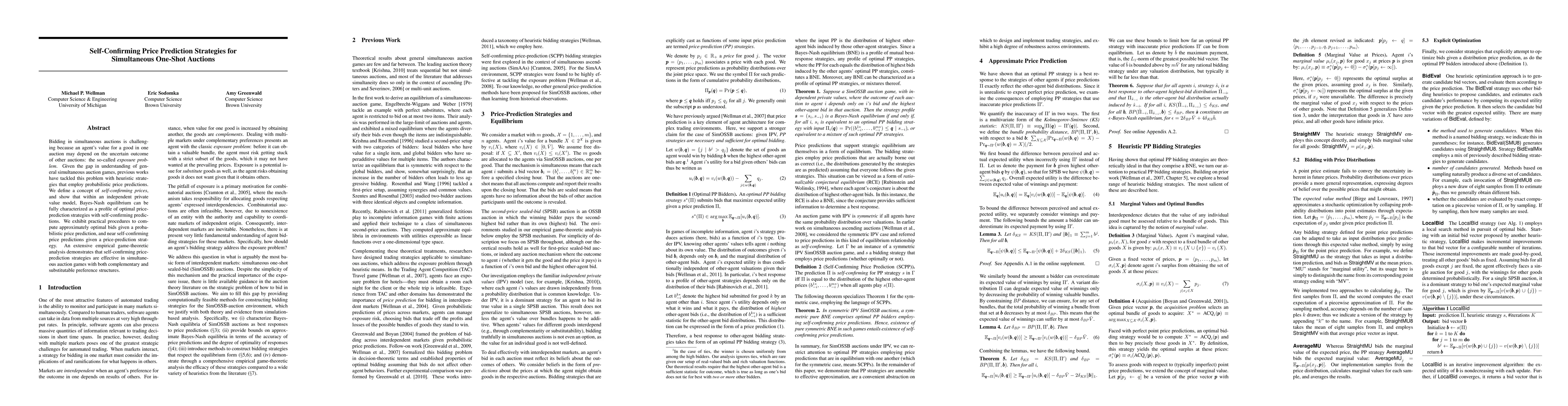 This paper introduces self-confirming price prediction strategies for simultaneous auctions, addressing the exposure problem where outcomes in one auction affect values in others. It characterizes Bayes-Nash equilibrium through optimal price prediction strategies and demonstrates their effectiveness through empirical analysis in various auction scenarios.