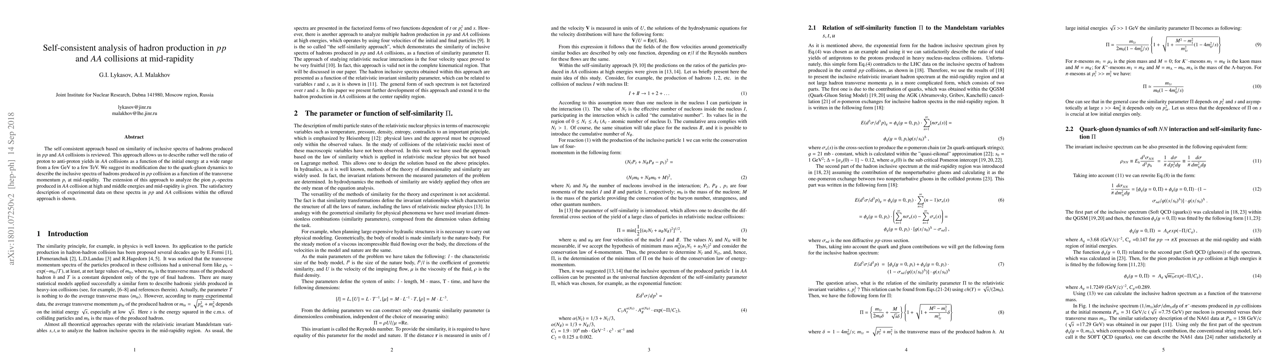 The self-consistent approach based on similarity of inclusive spectra of hadrons produced in $pp$ and $AA$ collisions is reviewed. This approach allows us to describe rather well the ratio of proton to anti-proton yields in $AA$ collisions as a function of the initial energy at a wide range from a few GeV to a few TeV. We suggest its modification due to the quark-gluon dynamics to describe the inclusive spectra of hadrons produced in $pp$ collision as a function of the transverse momentum $p_t$ at mid-rapidity. The extension of this approach to analyze the pion $p_t$-spectra produced in $AA$ collision at high and middle energies and mid-rapidity is given. The satisfactory description of experimental data on these spectra in $pp$ and $AA$ collisions within the offered approach is shown.