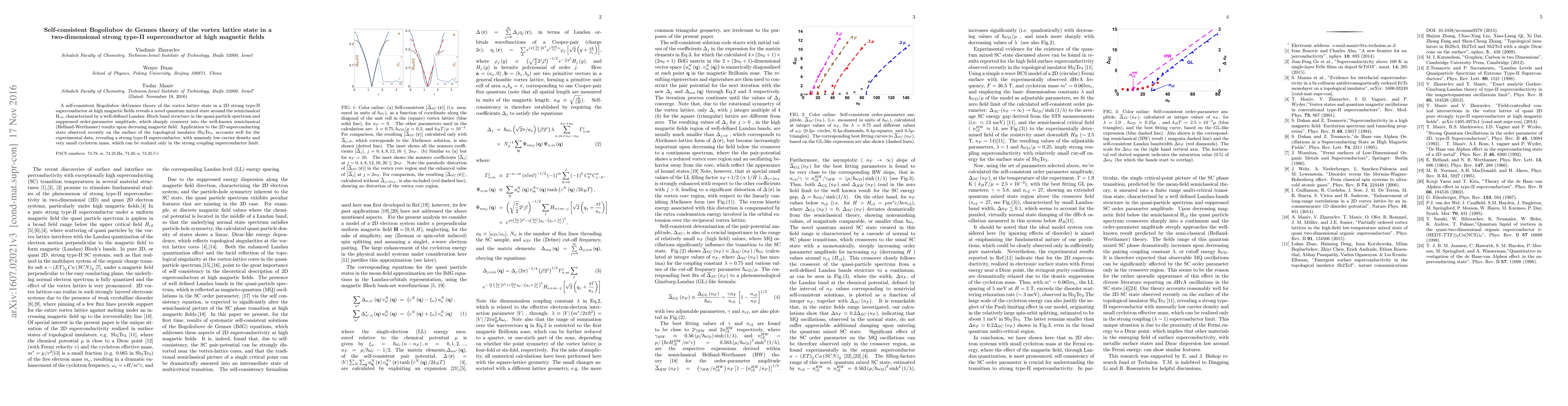This paper develops a self-consistent Bogoliubov deGennes theory to describe the vortex lattice state in 2D strong type-II superconductors at high magnetic fields, revealing a novel quantum mixed state with a Landau-Bloch band structure and suppressed order-parameter amplitude. The theory aligns well with recent experimental observations on the surface of the topological insulator Sb2Te3.