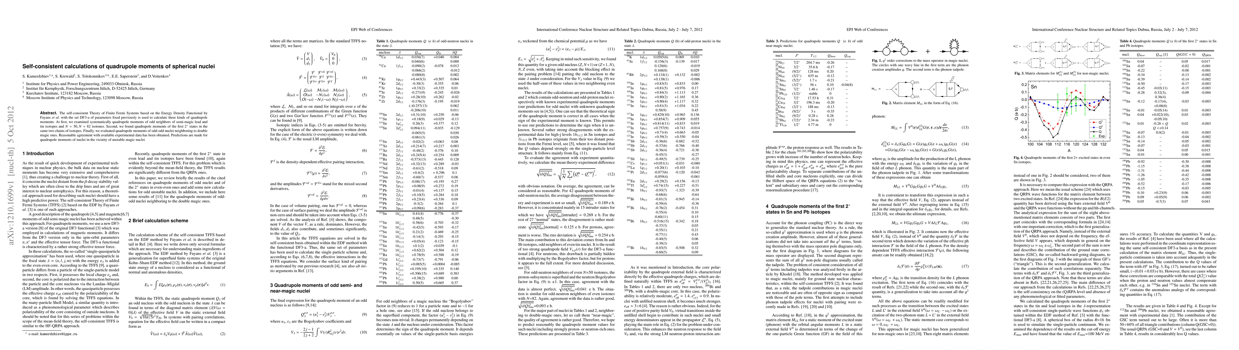 The self-consistent Theory of Finite Fermi Systems based on the Energy Density Functional by Fayans et al. with the set DF3-a of parameters fixed previously is used to calculate three kinds of quadrupole moments. At first, we examined systematically quadrupole moments of odd neighbors of semi-magic lead and tin isotopes and $N=50,N=82$ isotones. Second, we found quadrupole moments of the first $2^+$ states in the same two chains of isotopes. Finally, we evaluated quadrupole moments of odd-odd nuclei neighboring to double magic ones. Reasonable agreement with available experimental data has been obtained. Predictions are made for quadrupole moments of nuclei in the vicinity of unstable magic nuclei