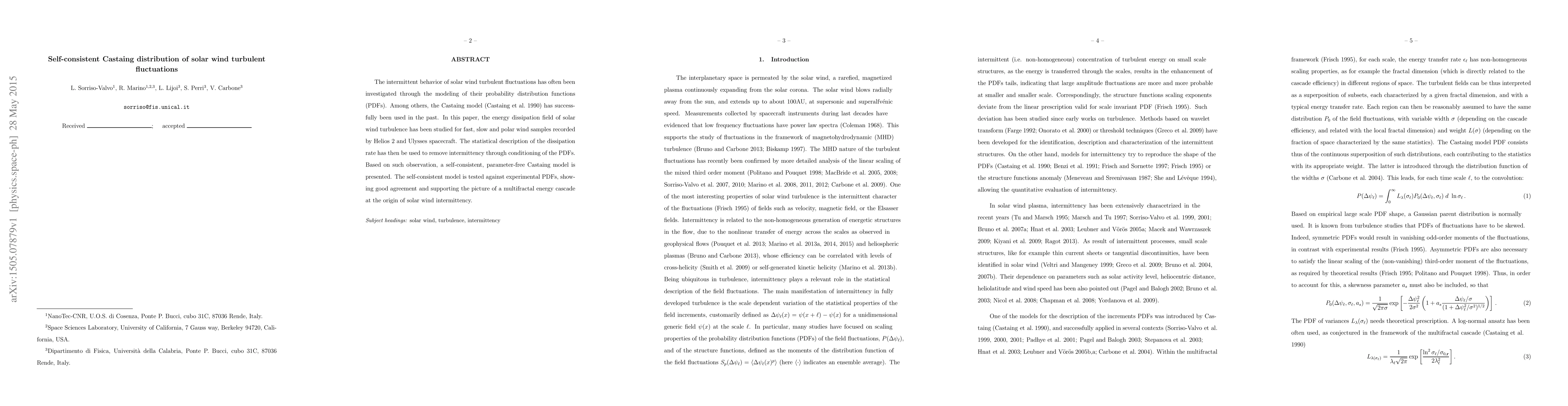 This paper investigates the intermittent behavior of solar wind turbulence using the Castaing model, presenting a self-consistent, parameter-free version. It shows good agreement with experimental probability distribution functions, supporting a multifractal energy cascade origin for solar wind intermittency.