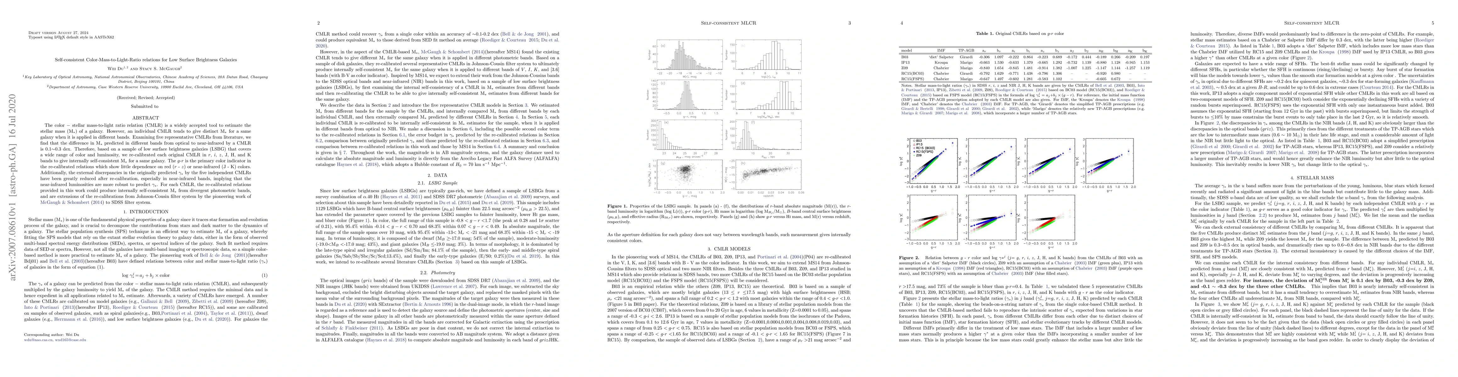 Researchers recalibrated color-mass-to-light ratio relations for low surface brightness galaxies to provide internally self-consistent stellar mass estimates across different photometric bands.