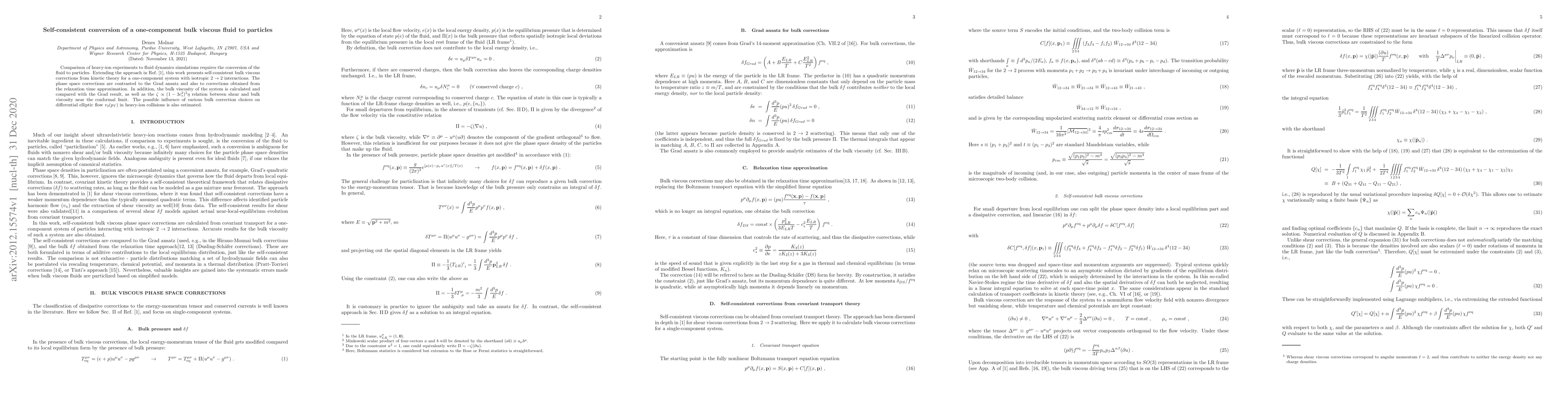 This paper develops self-consistent bulk viscous corrections from kinetic theory for a one-component bulk viscous fluid, comparing these to the Grad ansatz and relaxation time approximation. It also examines the impact of these corrections on differential elliptic flow in heavy-ion collisions.