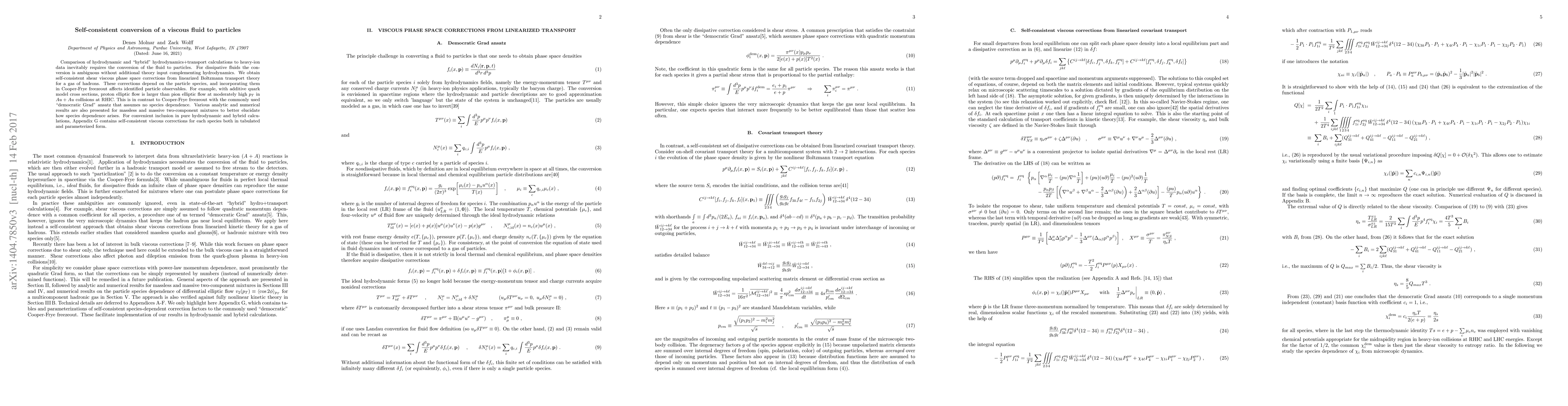 This paper develops self-consistent shear viscous phase space corrections from transport theory to improve the conversion of viscous fluid to particles in heavy-ion collision data. These corrections, which depend on particle species, show that proton elliptic flow exceeds pion elliptic flow at high transverse momentum, contrasting with the "democratic Grad" ansatz.