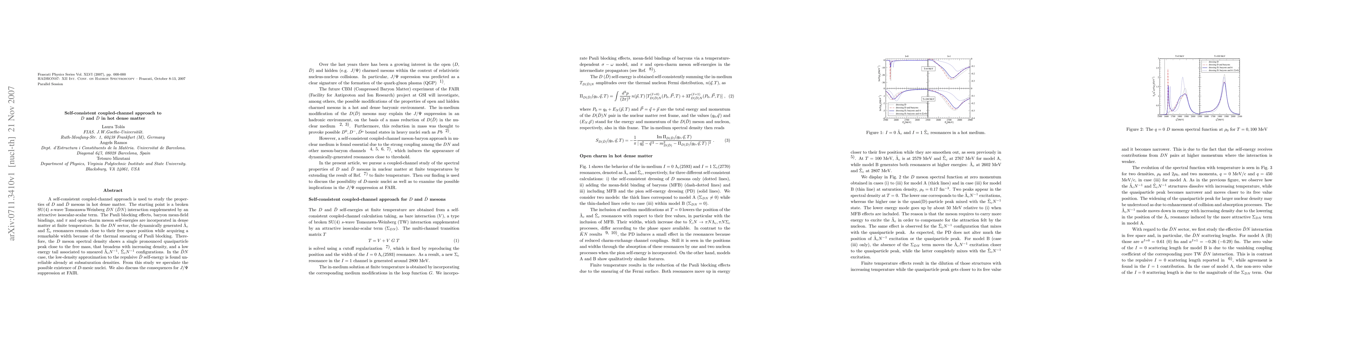 Researchers used a self-consistent approach to study D and ar{D} mesons in hot dense matter, finding a single quasiparticle peak for the D meson that broadens with density, and speculating about the possible existence of D-mesic nuclei.