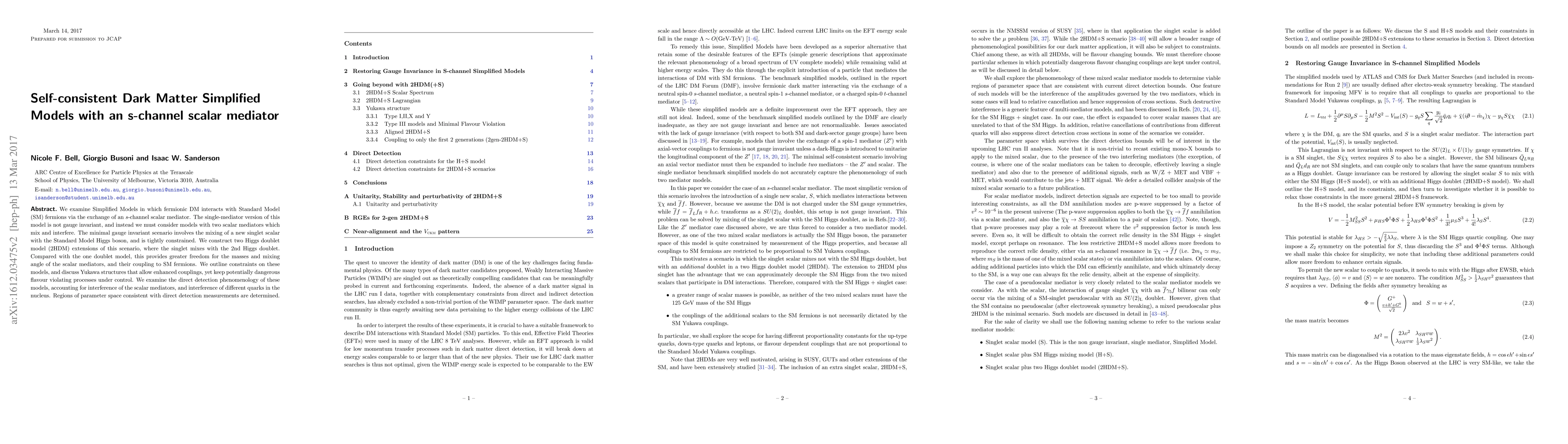 Researchers investigated simplified models of dark matter that interact with Standard Model particles via an s-channel scalar mediator. They found regions of parameter space consistent with direct detection measurements.