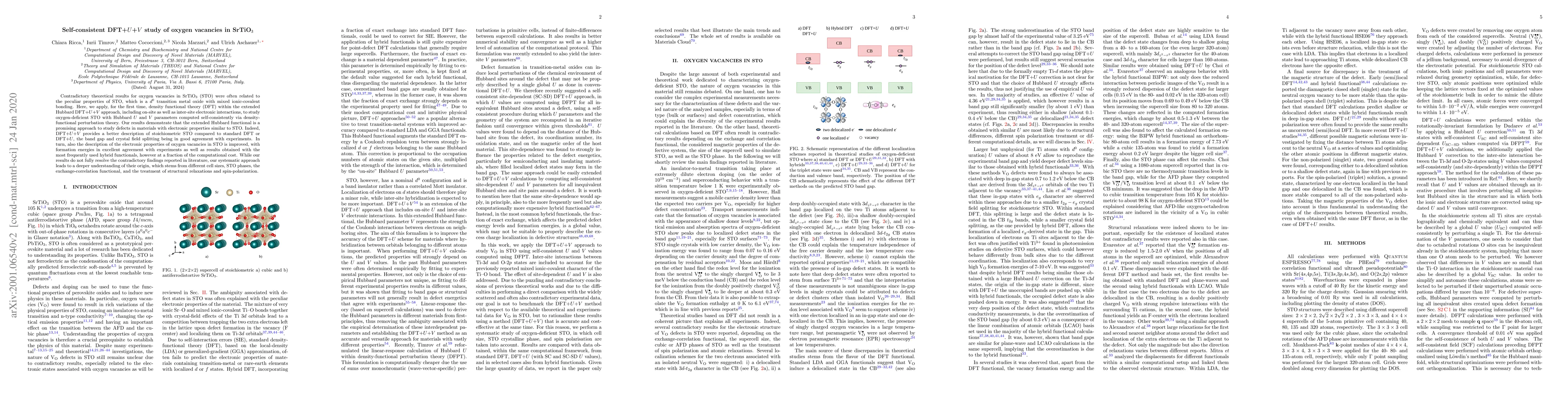 This work presents a new approach to studying oxygen vacancies in SrTiO3 using site-dependent U parameters, which provides improved accuracy over previous methods.