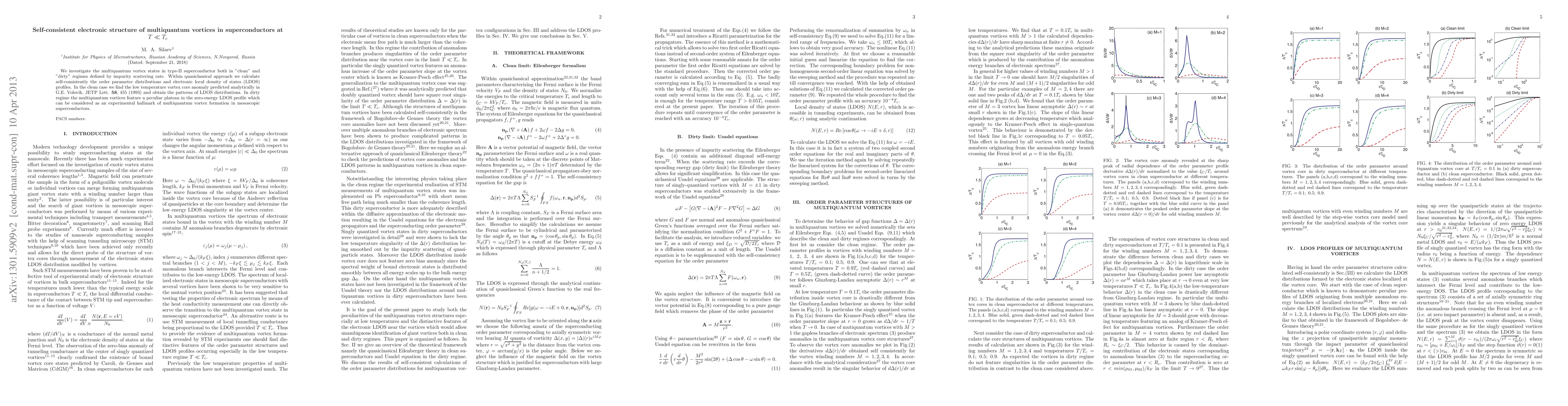 This paper investigates multiquantum vortex states in type-II superconductors, calculating self-consistently the order parameter and electronic local density of states in both clean and dirty regimes. It finds a low-temperature vortex core anomaly in clean superconductors and a zero-energy plateau in the dirty regime, serving as an experimental signature of multiquantum vortex formation.