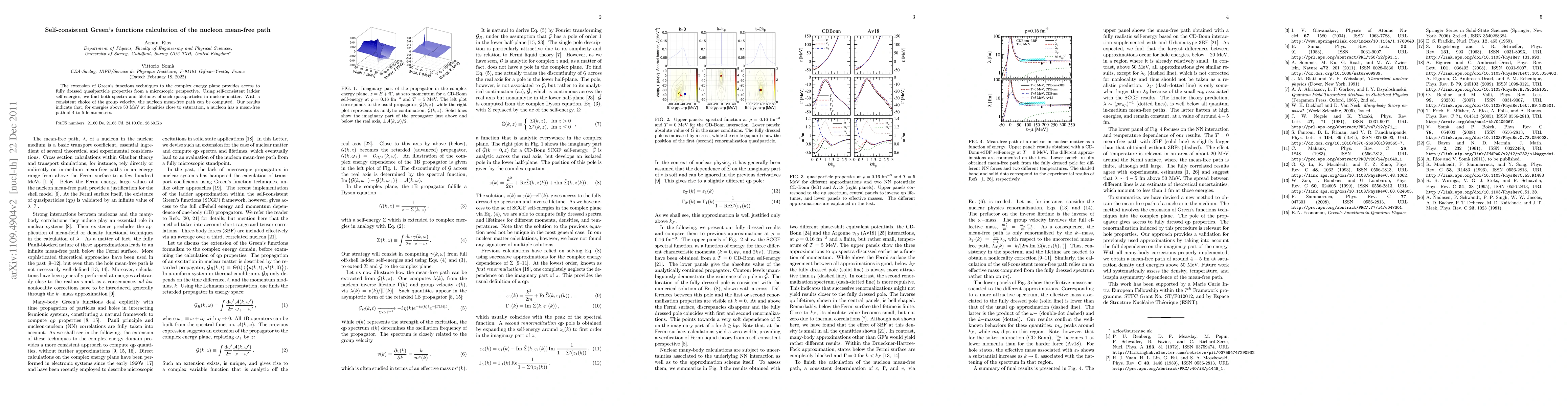 The extension of Green's functions techniques to the complex energy plane provides access to fully dressed quasi-particle properties from a microscopic perspective. Using self-consistent ladder self-energies, we find both spectra and lifetimes of such quasi-particles in nuclear matter. With a consistent choice of the group velocity, the nucleon mean-free path can be computed. Our results indicate that, for energies above 50 MeV at densities close to saturation, a nucleon has a mean-free path of 4 to 5 femtometers.