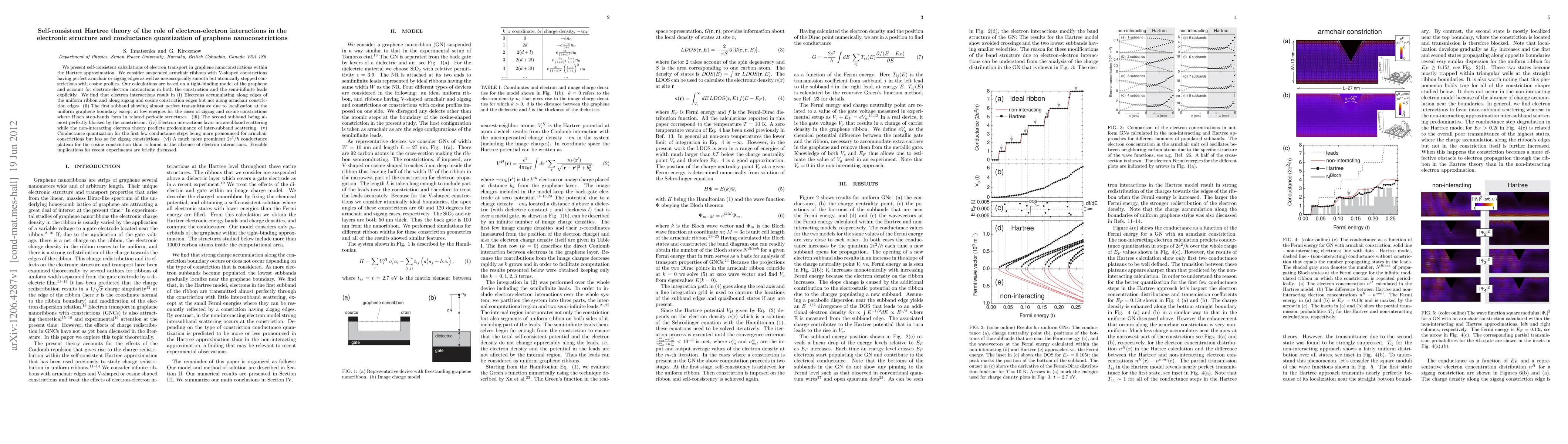 This paper uses self-consistent Hartree theory to study electron transport in graphene nanoconstrictions, revealing that electron-electron interactions lead to significant effects on conductance quantization and electron localization, with pronounced differences between armchair and zigzag constrictions.