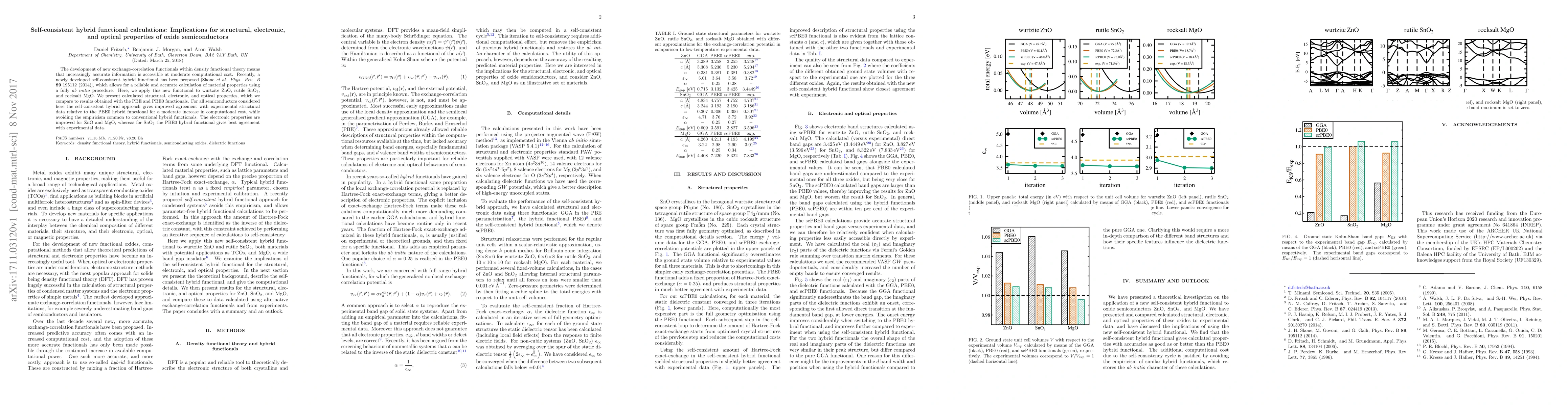 The development of new exchange-correlation functionals within density functional theory means that increasingly accurate information is accessible at moderate computational cost. Recently, a newly developed self-consistent hybrid functional has been proposed [Skone \textit{et al.} Phys. Rev. B \textbf{89}, 195112 (2014)], which allows for a reliable and accurate calculation of material properties using a fully \textit{ab initio} procedure. Here, we apply this new functional to wurtzite ZnO, rutile SnO$_2$, and rocksalt MgO. We present calculated structural, electronic, and optical properties, which we compare to results obtained with the PBE and PBE0 functionals. For all semiconductors considered here the self-consistent hybrid approach gives improved agreement with experimental structural data relative to the PBE0 hybrid functional for a moderate increase in computational cost, while avoiding the empiricism common to conventional hybrid functionals. The electronic properties are improved for ZnO and MgO, whereas for SnO$_2$ the PBE0 hybrid functional gives best agreement with experimental data.