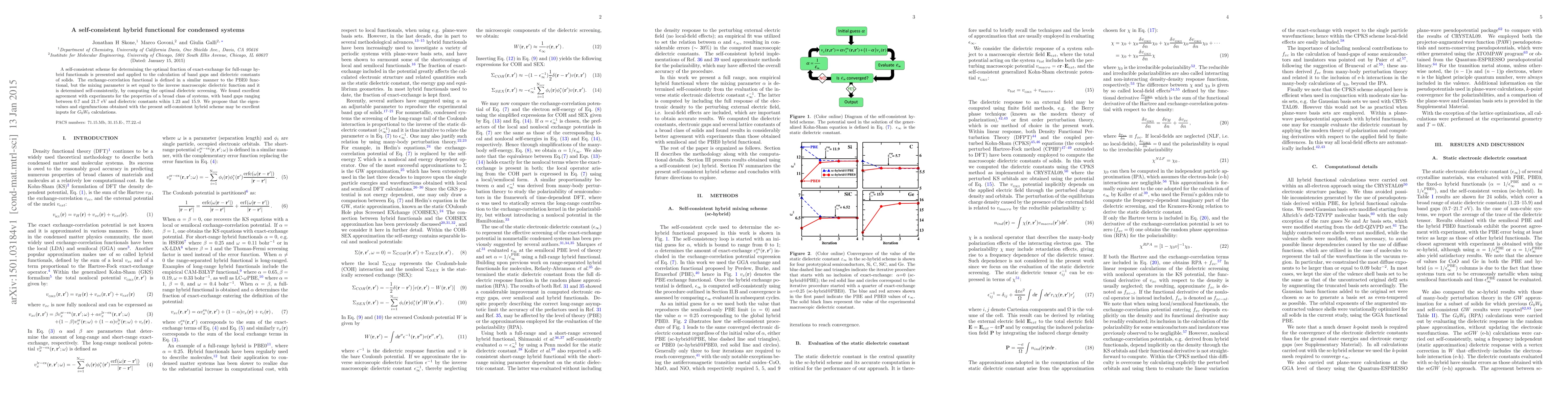 This paper introduces a self-consistent hybrid functional method that optimizes the exact exchange fraction for accurate calculations of band gaps and dielectric constants in solids. The method shows excellent experimental agreement and proposes its eigenvalues and eigenfunctions as valuable inputs for G$_0$W$_0$ calculations.