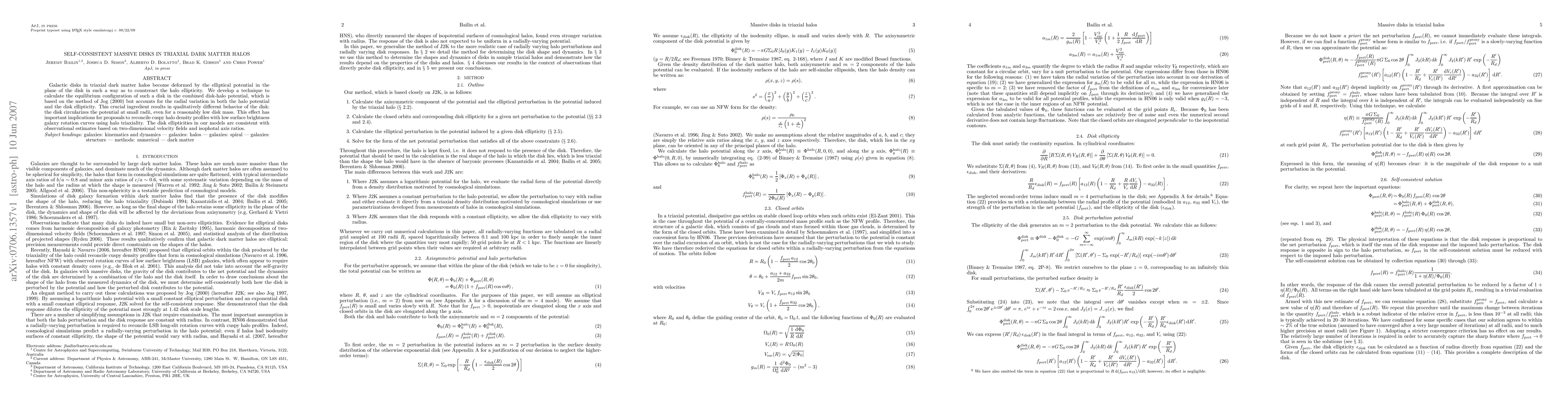This paper develops a method to calculate the equilibrium configuration of massive disks in triaxial dark matter halos, showing that disks counteract the halo's elliptical potential, leading to circularization at small radii and implications for reconciling cuspy halo profiles with galaxy rotation curves. The models' disk ellipticities align with observational data.