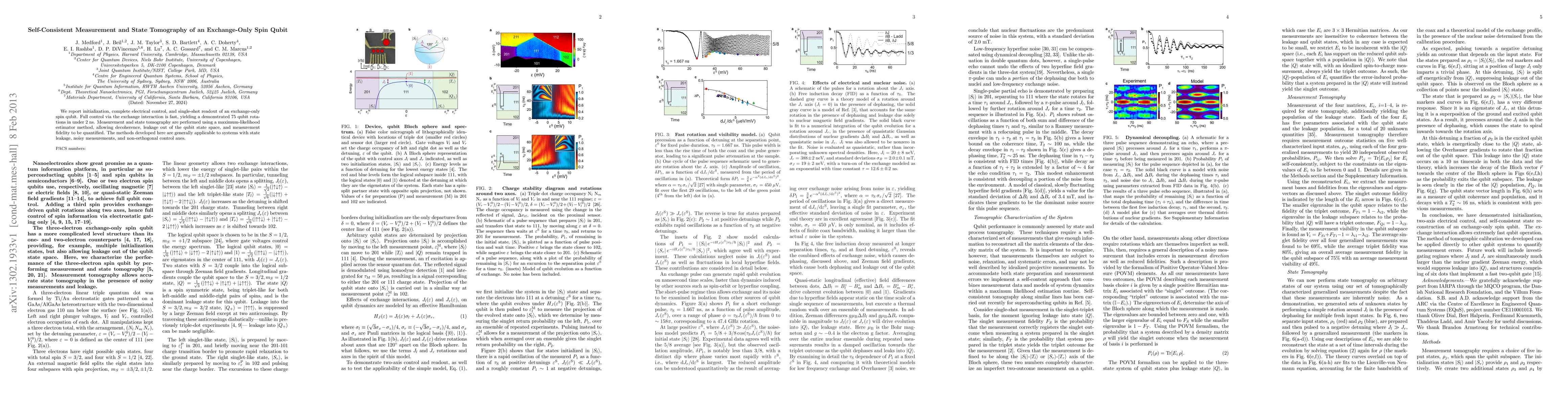This paper details the initialization, control, and readout of an exchange-only spin qubit, demonstrating fast 75 qubit rotations in under 2 ns. It employs a maximum-likelihood estimator for measurement and state tomography, quantifying decoherence, leakage, and measurement fidelity, with methods applicable to systems with state leakage and noisy measurements.