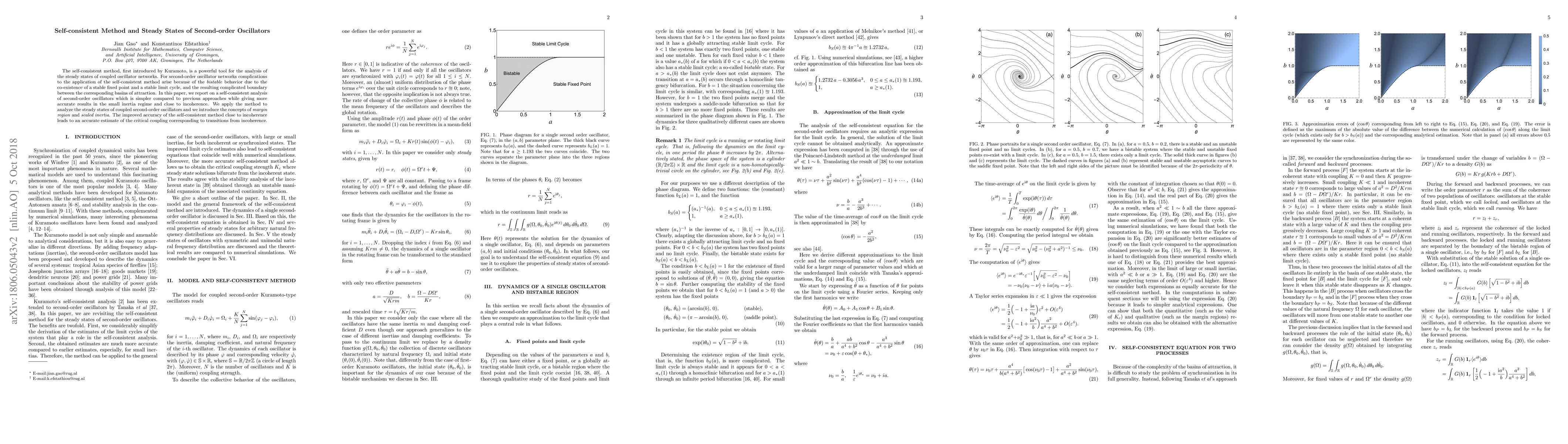 The self-consistent method, first introduced by Kuramoto, is a powerful tool for the analysis of the steady states of coupled oscillator networks. For second-order oscillator networks complications to the application of the self-consistent method arise because of the bistable behavior due to the co-existence of a stable fixed point and a stable limit cycle, and the resulting complicated boundary between the corresponding basins of attraction. In this paper, we report on a self-consistent analysis of second-order oscillators which is simpler compared to previous approaches while giving more accurate results in the small inertia regime and close to incoherence. We apply the method to analyze the steady states of coupled second-order oscillators and we introduce the concepts of margin region and scaled inertia. The improved accuracy of the self-consistent method close to incoherence leads to an accurate estimate of the critical coupling corresponding to transitions from incoherence.