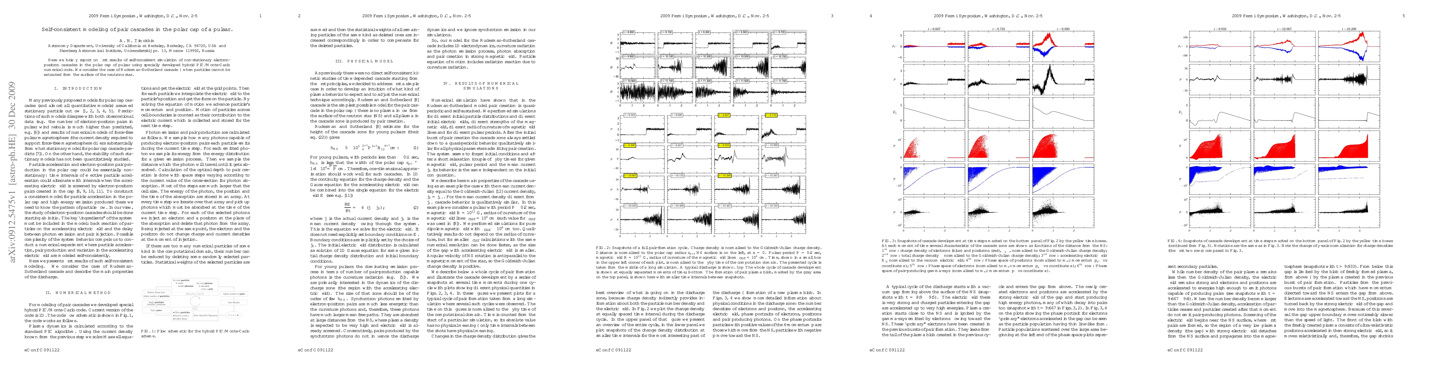 Researchers simulated non-stationary electron-positron cascades in a pulsar's polar cap using a new numerical code, finding insights into the Ruderman-Sutherland cascade scenario. The study provides new understanding of particle behavior under certain conditions.