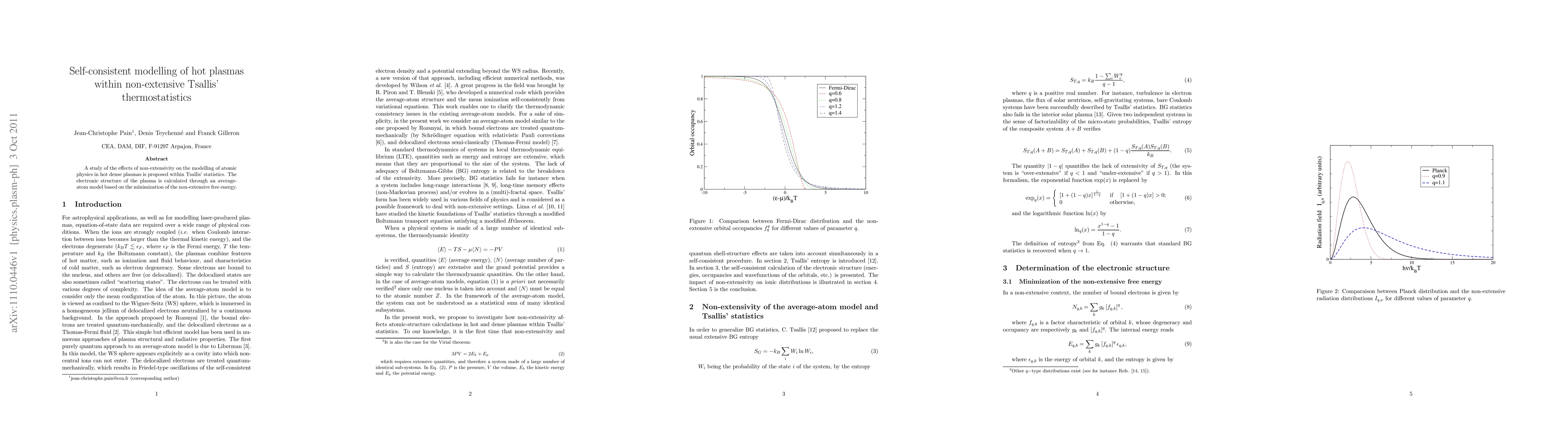 A study of the effects of non-extensivity on the modelling of atomic physics in hot dense plasmas is proposed within Tsallis' statistics. The electronic structure of the plasma is calculated through an average-atom model based on the minimization of the non-extensive free energy.