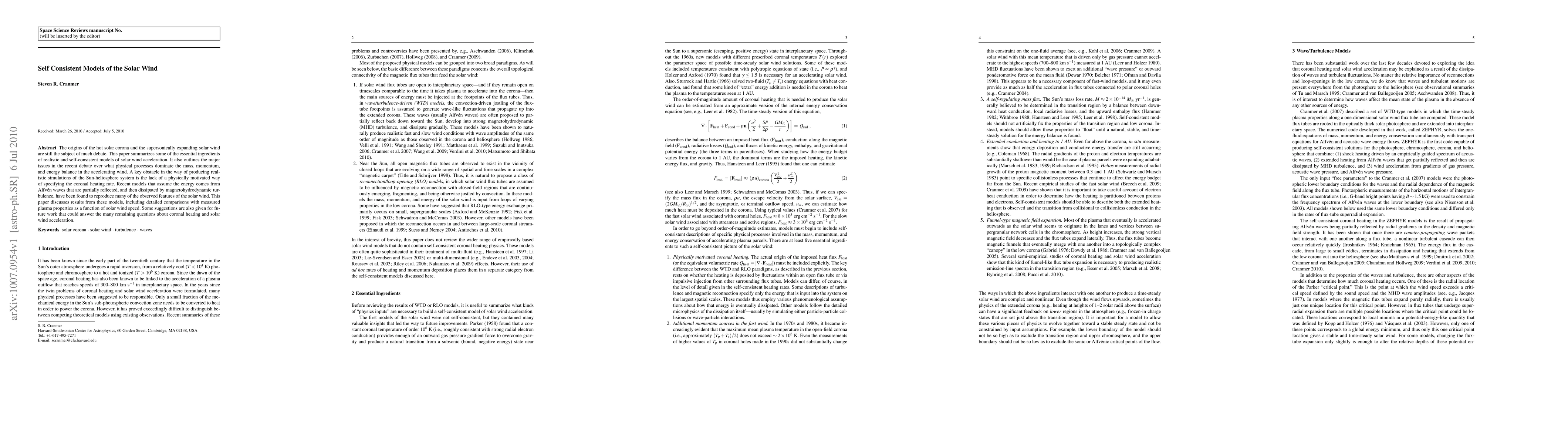 This paper reviews self-consistent models of solar wind acceleration, focusing on the processes that dominate mass, momentum, and energy balance. It highlights recent models suggesting Alfven waves and magnetohydrodynamic turbulence as key contributors, and discusses future research directions to address coronal heating uncertainties.