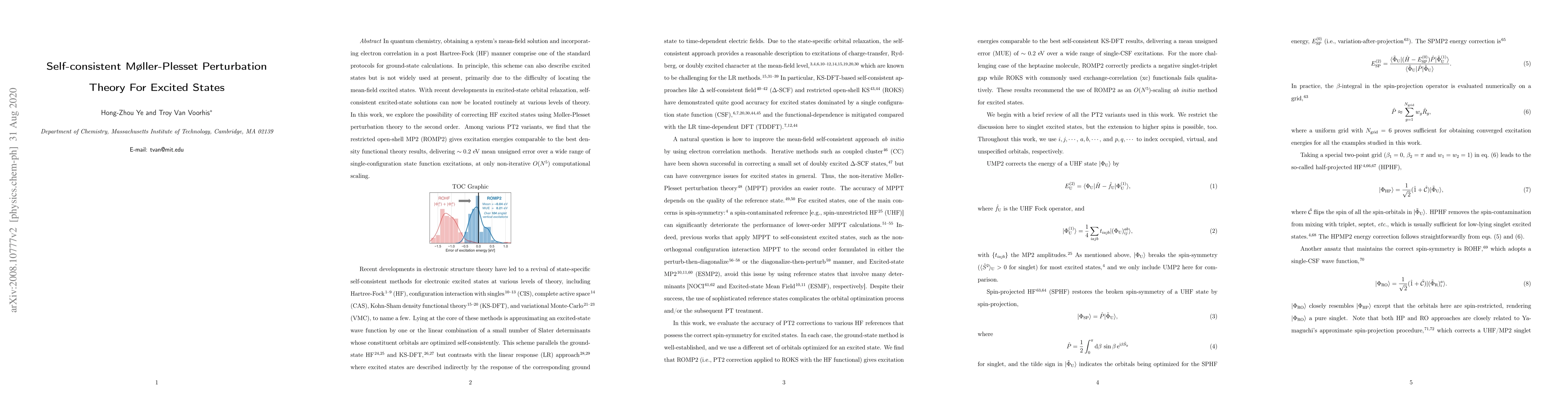 This paper explores the application of second-order M{\o}ller-Plesset perturbation theory (MP2) to correct Hartree-Fock excited states, finding that restricted open-shell MP2 (ROMP2) provides accurate excitation energies comparable to density functional theory, with a mean unsigned error of $\sim 0.2$ eV and non-iterative $O(N^5)$ computational complexity.
