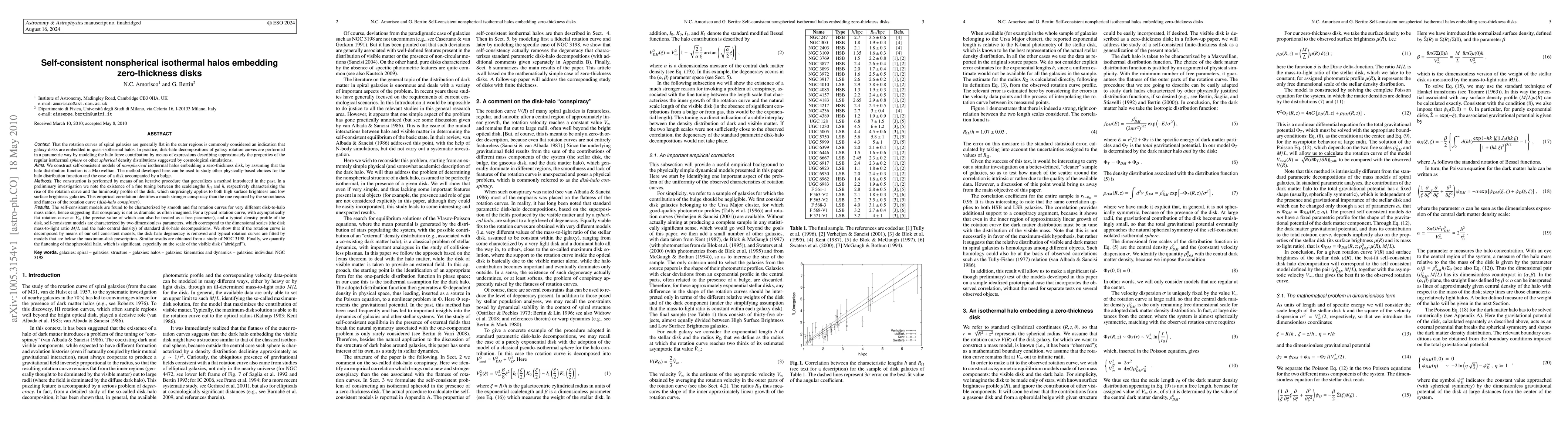 Disk-halo decompositions of galaxy rotation curves are generally performed in a parametric way. We construct self-consistent models of nonspherical isothermal halos embedding a zero-thickness disk, by assuming that the halo distribution function is a Maxwellian. The method developed here can be used to study other physically-based choices for the halo distribution function and the case of a disk accompanied by a bulge. In a preliminary investigation we note the existence of a fine tuning between the scalelengths R_{\Omega} and h, respectively characterizing the rise of the rotation curve and the luminosity profile of the disk, which surprisingly applies to both high surface brightness and low surface brightness galaxies. This empirical correlation identifies a much stronger conspiracy than the one required by the smoothness and flatness of the rotation curve (disk-halo conspiracy). The self-consistent models are characterized by smooth and flat rotation curves for very different disk-to-halo mass ratios, hence suggesting that conspiracy is not as dramatic as often imagined. For a typical rotation curve, with asymptotically flat rotation curve at V_{\infty} (the precise value of which can also be treated as a free parameter), and a typical density profile of the disk, self-consistent models are characterized by two dimensionless parameters, which correspond to the dimensional scales (the disk mass-to-light ratio M/L and the halo central density) of standard disk-halo decompositions. We show that if the rotation curve is decomposed by means of our self-consistent models, the disk-halo degeneracy is removed and typical rotation curves are fitted by models that are below the maximum-disk prescription. Similar results are obtained from a study of NGC 3198. Finally, we quantify the flattening of the spheroidal halo, which is significant, especially on the scale of the visible disk.