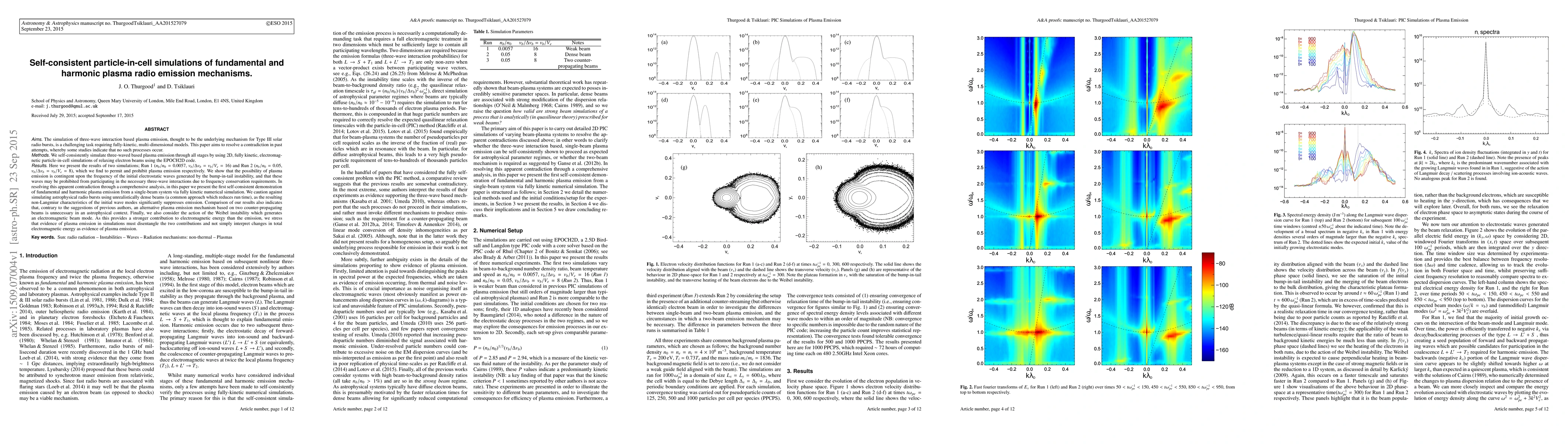 This paper uses self-consistent, fully kinetic, 2D particle-in-cell simulations to demonstrate fundamental and harmonic plasma radio emission mechanisms, resolving past contradictions by showing that emission depends on the initial wave frequency and is suppressed by non-Langmuir wave modes. It concludes that a two-beam mechanism is unnecessary in astrophysical contexts.