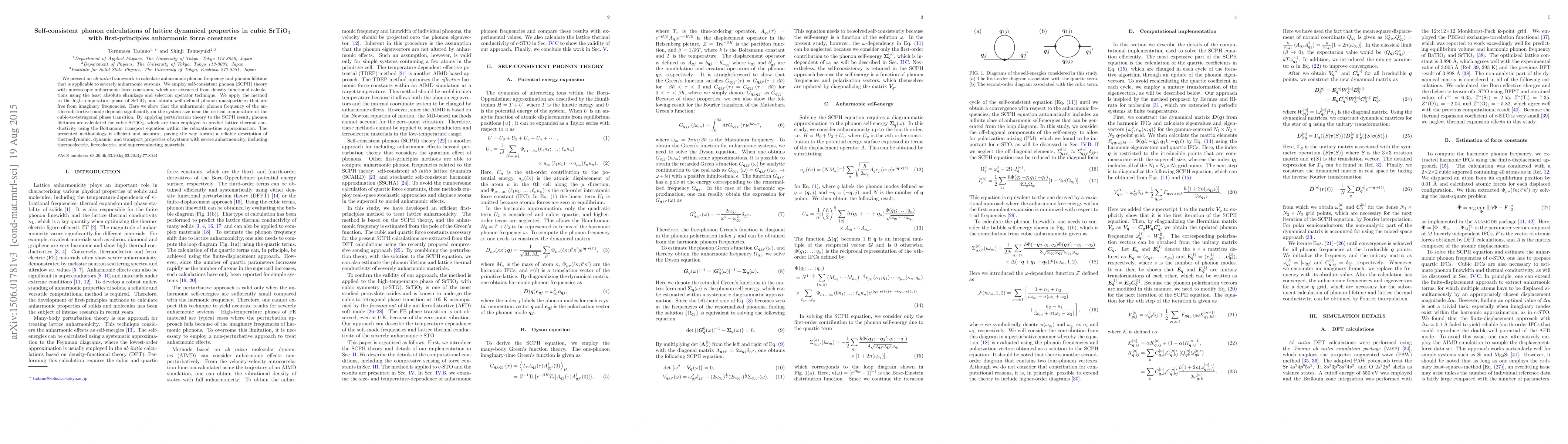 This paper introduces an \textit{ab initio} framework for calculating anharmonic phonon properties in cubic SrTiO$_{3}$ using self-consistent phonon theory and microscopic force constants derived from density-functional calculations. The method accurately predicts phonon frequencies and lifetimes, enabling reliable predictions of lattice thermal conductivity and applicable to materials with severe anharmonicity.