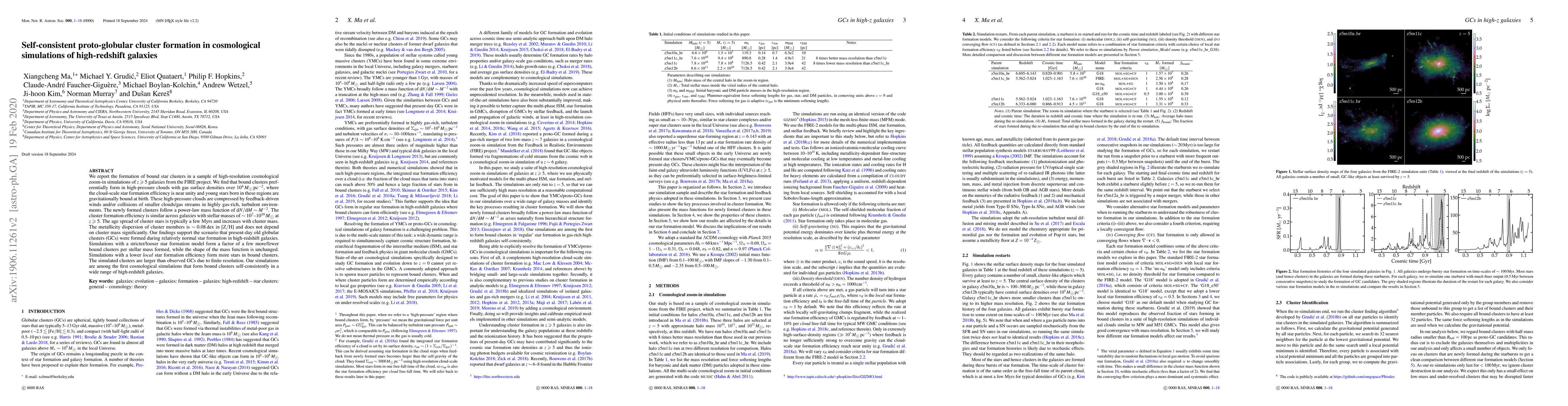 This study reports the self-consistent formation of proto-globular clusters in high-redshift galaxies using high-resolution cosmological simulations. The clusters form in high-pressure gas clouds with near-unity star formation efficiency, leading to gravitationally bound young stars.