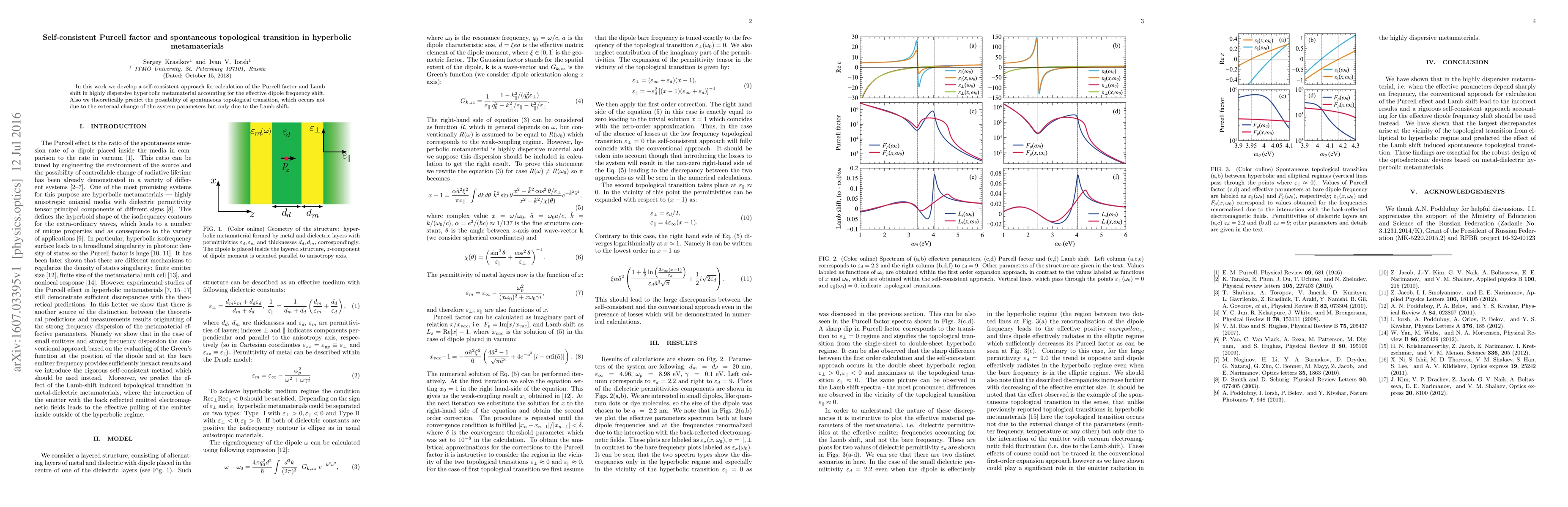 This paper presents a self-consistent method for calculating the Purcell factor and Lamb shift in hyperbolic metamaterials, revealing a spontaneous topological transition driven by the Lamb shift rather than external parameter changes.
