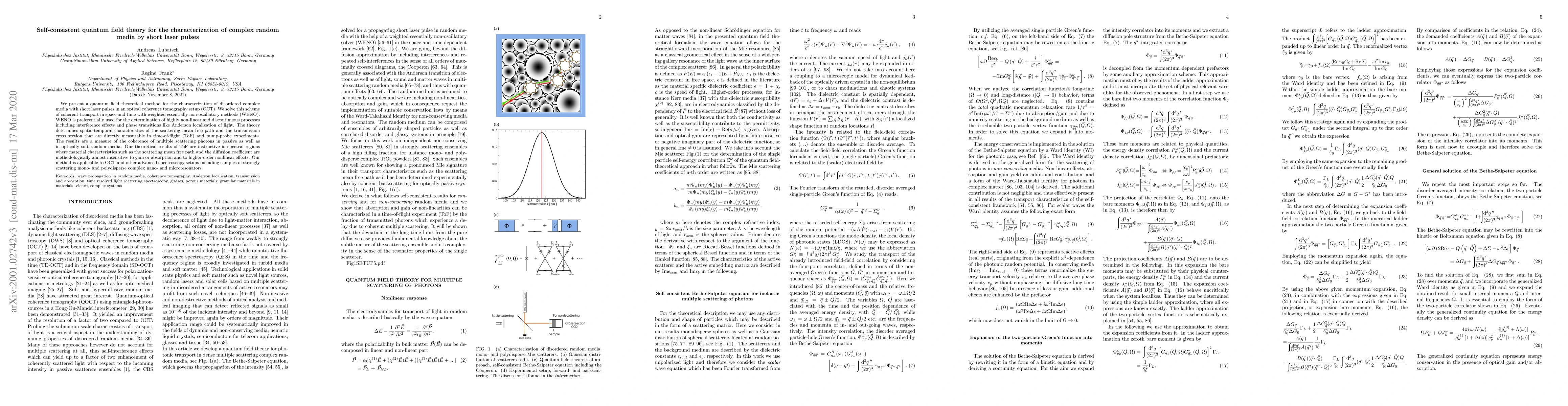 This paper introduces a quantum field theoretical method for characterizing disordered complex media using short laser pulses in optical coherence tomography, employing weighted essentially nonoscillatory methods to analyze nonlinear and discontinuous processes. The method determines measurable spatiotemporal characteristics, providing insights into the coherence of scattered photons in passive and optically soft random media.