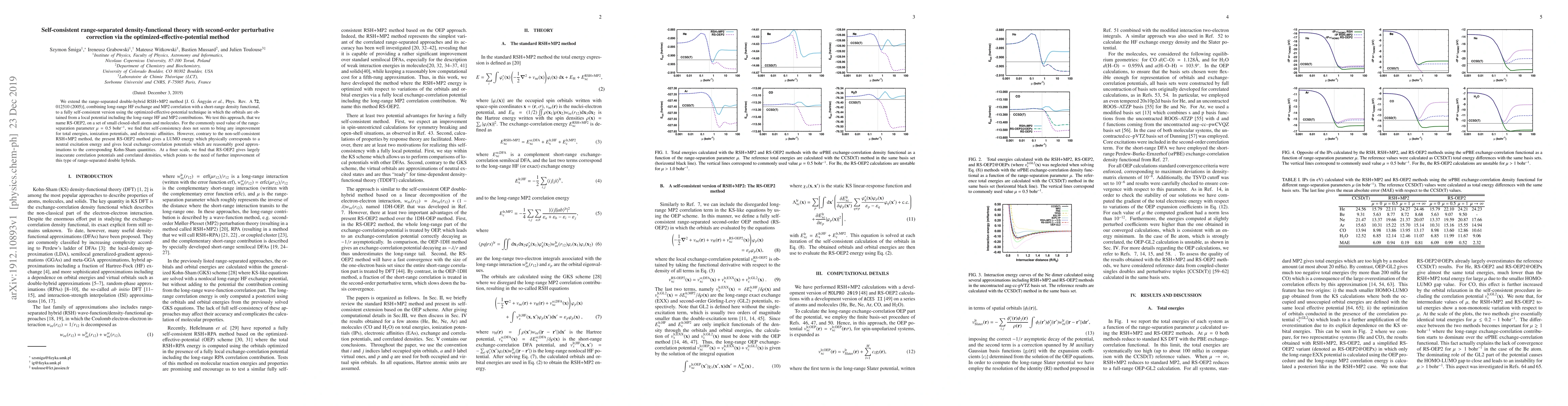 This paper introduces a self-consistent version of the range-separated double-hybrid RSH+MP2 method, named RS-OEP2, using the optimized-effective-potential technique. While RS-OEP2 does not improve total energies or ionization potentials, it provides a physically meaningful LUMO energy and better local exchange-correlation potentials compared to the non-self-consistent RSH+MP2 method, though it still shows inaccuracies in correlation potentials and densities.