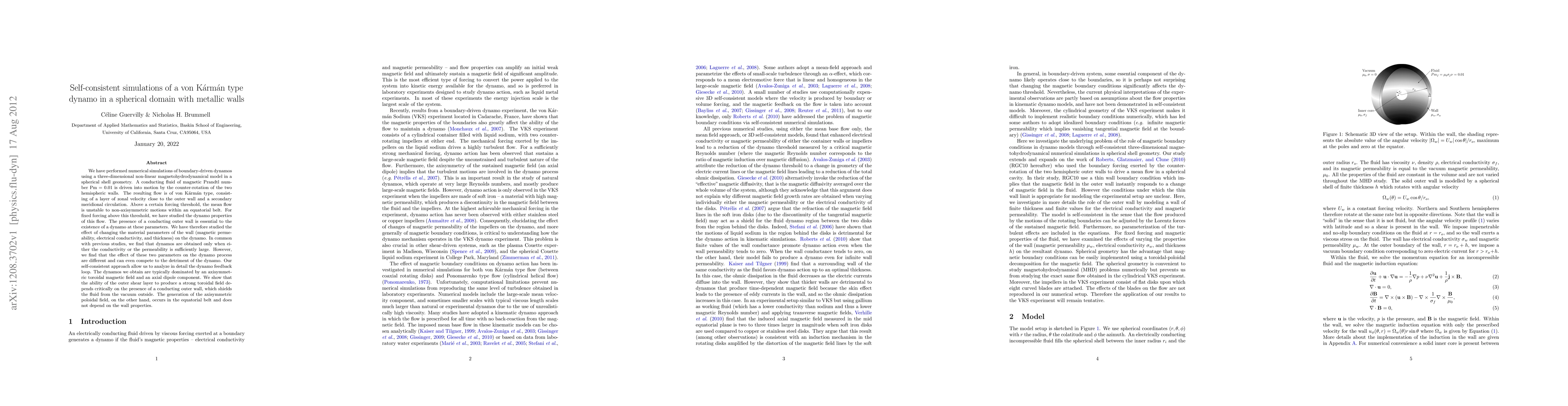 We have performed numerical simulations of boundary-driven dynamos using a three-dimensional non-linear magnetohydrodynamical model in a spherical shell geometry. A conducting fluid of magnetic Prandtl number Pm=0.01 is driven into motion by the counter-rotation of the two hemispheric walls. The resulting flow is of von K\'arm\'an type, consisting of a layer of zonal velocity close to the outer wall and a secondary meridional circulation. Above a certain forcing threshold, the mean flow is unstable to non-axisymmetric motions within an equatorial belt. For fixed forcing above this threshold, we have studied the dynamo properties of this flow. The presence of a conducting outer wall is essential to the existence of a dynamo at these parameters. We have therefore studied the effect of changing the material parameters of the wall (magnetic permeability, electrical conductivity, and thickness) on the dynamo. In common with previous studies, we find that dynamos are obtained only when either the conductivity or the permeability is sufficiently large. However, we find that the effect of these two parameters on the dynamo process are different and can even compete to the detriment of the dynamo. Our self-consistent approach allow us to analyze in detail the dynamo feedback loop. The dynamos we obtain are typically dominated by an axisymmetric toroidal magnetic field and an axial dipole component. We show that the ability of the outer shear layer to produce a strong toroidal field depends critically on the presence of a conducting outer wall, which shields the fluid from the vacuum outside. The generation of the axisymmetric poloidal field, on the other hand, occurs in the equatorial belt and does not depend on the wall properties.