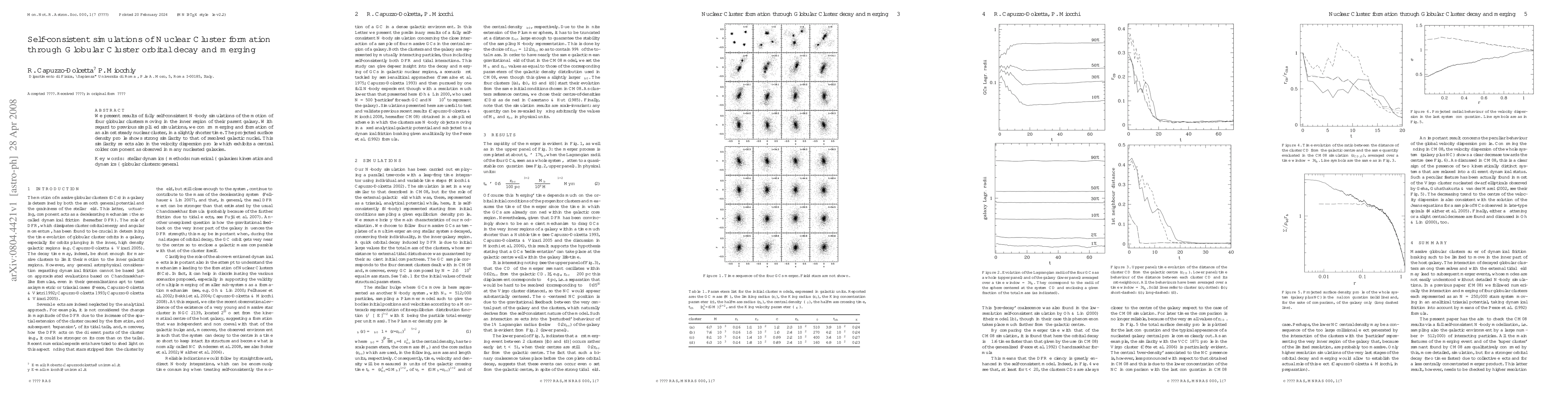 We present results of fully self-consistent N-body simulations of the motion of four globular clusters moving in the inner region of their parent galaxy. With regard to previous simplified simulations, we confirm merging and formation of an almost steady nuclear cluster, in a slightly shorter time. The projected surface density profile shows strong similarity to that of resolved galactic nuclei. This similarity reflects also in the velocity dispersion profile which exhibits a central colder component as observed in many nucleated galaxies.