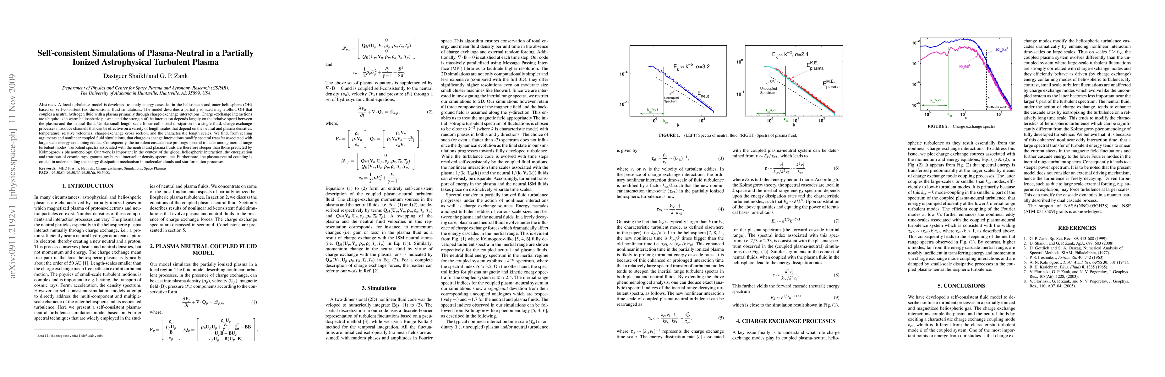 A local turbulence model is developed to study energy cascades in the heliosheath and outer heliosphere (OH) based on self-consistent two-dimensional fluid simulations. The model describes a partially ionized magnetofluid OH that couples a neutral hydrogen fluid with a plasma primarily through charge-exchange interactions. Charge-exchange interactions are ubiquitous in warm heliospheric plasma, and the strength of the interaction depends largely on the relative speed between the plasma and the neutral fluid. Unlike small-length scale linear collisional dissipation in a single fluid, charge-exchange processes introduce channels that can be effective on a variety of length scales that depend on the neutral and plasma densities, temperature, relative velocities, charge-exchange cross section, and the characteristic length scales. We find, from scaling arguments and nonlinear coupled fluid simulations, that charge-exchange interactions modify spectral transfer associated with large-scale energy-containing eddies. Consequently, the turbulent cascade rate prolongs spectral transfer among inertial range turbulent modes. Turbulent spectra associated with the neutral and plasma fluids are therefore steeper than those predicted by Kolmogorov's phenomenology. Our work is important in the context of the global heliospheric interaction, the energization and transport of cosmic rays, gamma-ray bursts, interstellar density spectra, etc. Furthermore, the plasma-neutral coupling is crucial in understanding the energy dissipation mechanism in molecular clouds and star formation processes.
