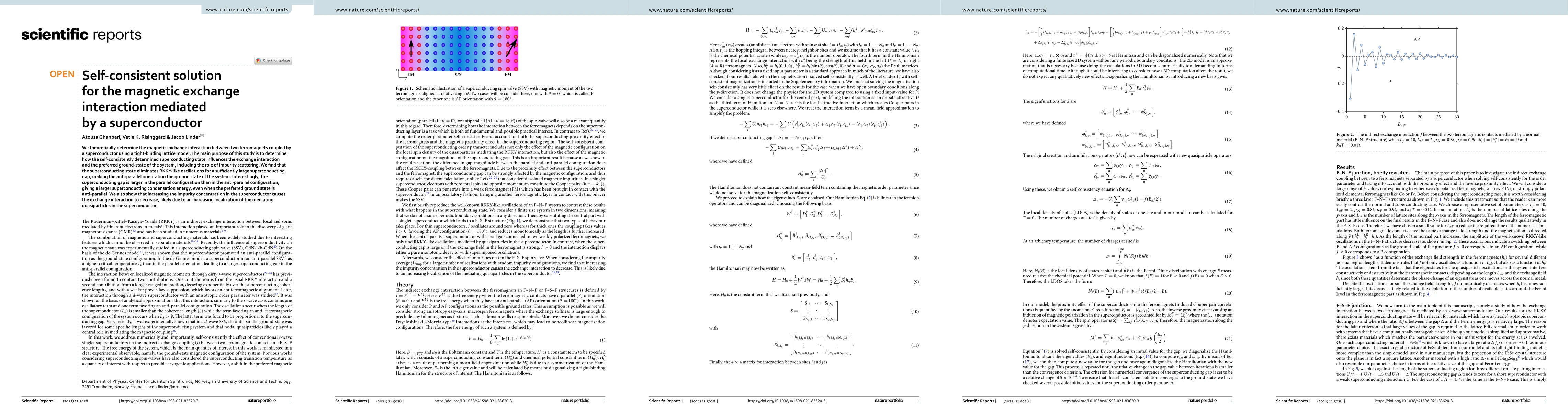 We theoretically determine the magnetic exchange interaction between two ferromagnets coupled by a superconductor using a tight-binding lattice model. The main purpose of this study is to determine how the self-consistently determined superconducting state influences the exchange interaction and the preferred ground-state of the system, including the role of impurity scattering. We find that the superconducting state eliminates RKKY-like oscillations for a sufficiently large superconducting gap, making the anti-parallel orientation the ground state of the system. Interestingly, the superconducting gap is larger in the parallel configuration than in the anti-parallel configuration, giving a larger superconducting condensation energy, even when the preferred ground state is anti-parallel. We also show that increasing the impurity concentration in the superconductor causes the exchange interaction to decrease, likely due to an increasing localization of the mediating quasiparticles in the superconductor.